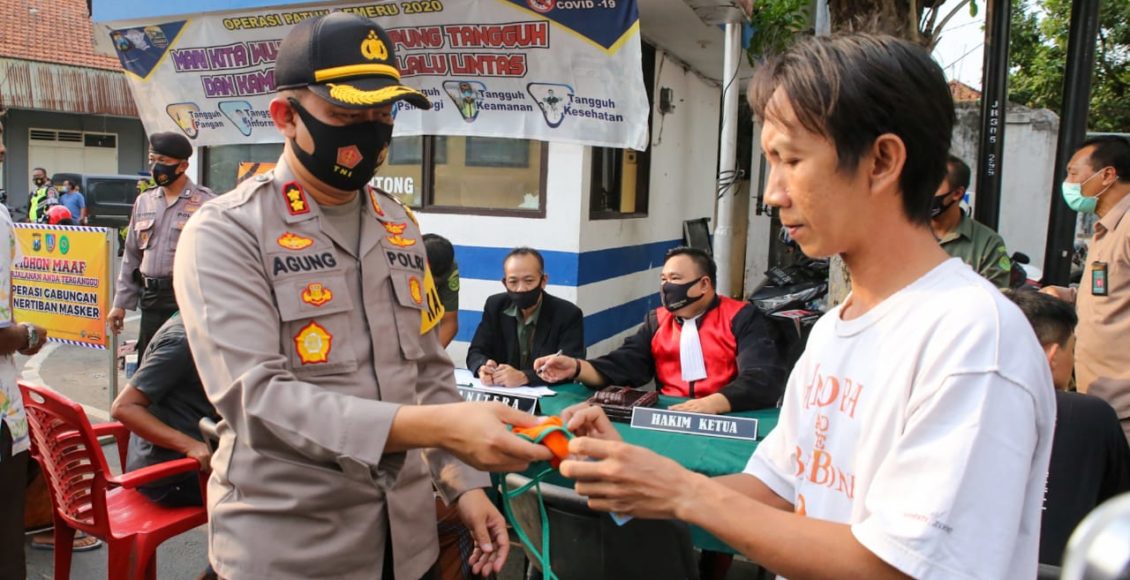 Polres Jombang melaksanakan kegiatan Operasi gabungan penertiban masker, pada hari Senin (14 September 2020), sekira pukul 15.00 wib, di Bundaran Ringin Contong Jombang.