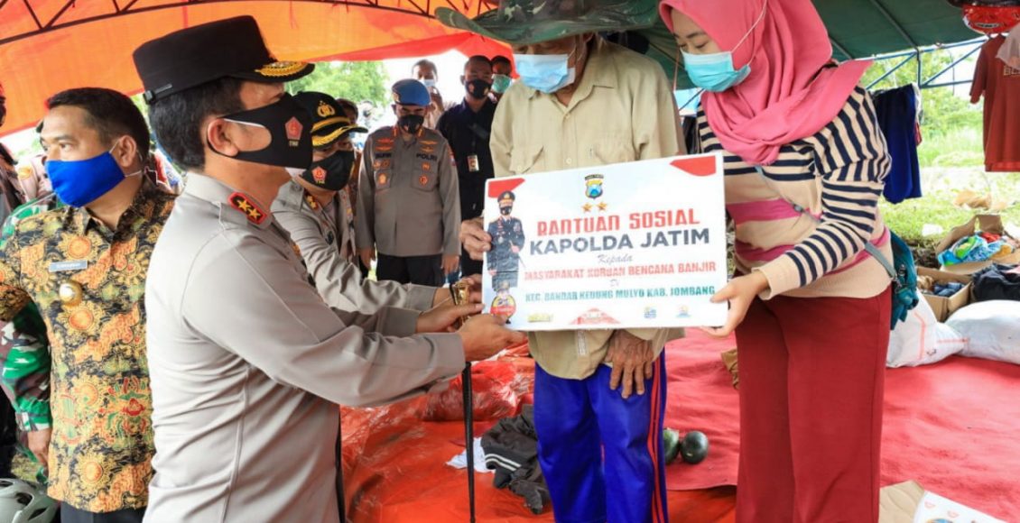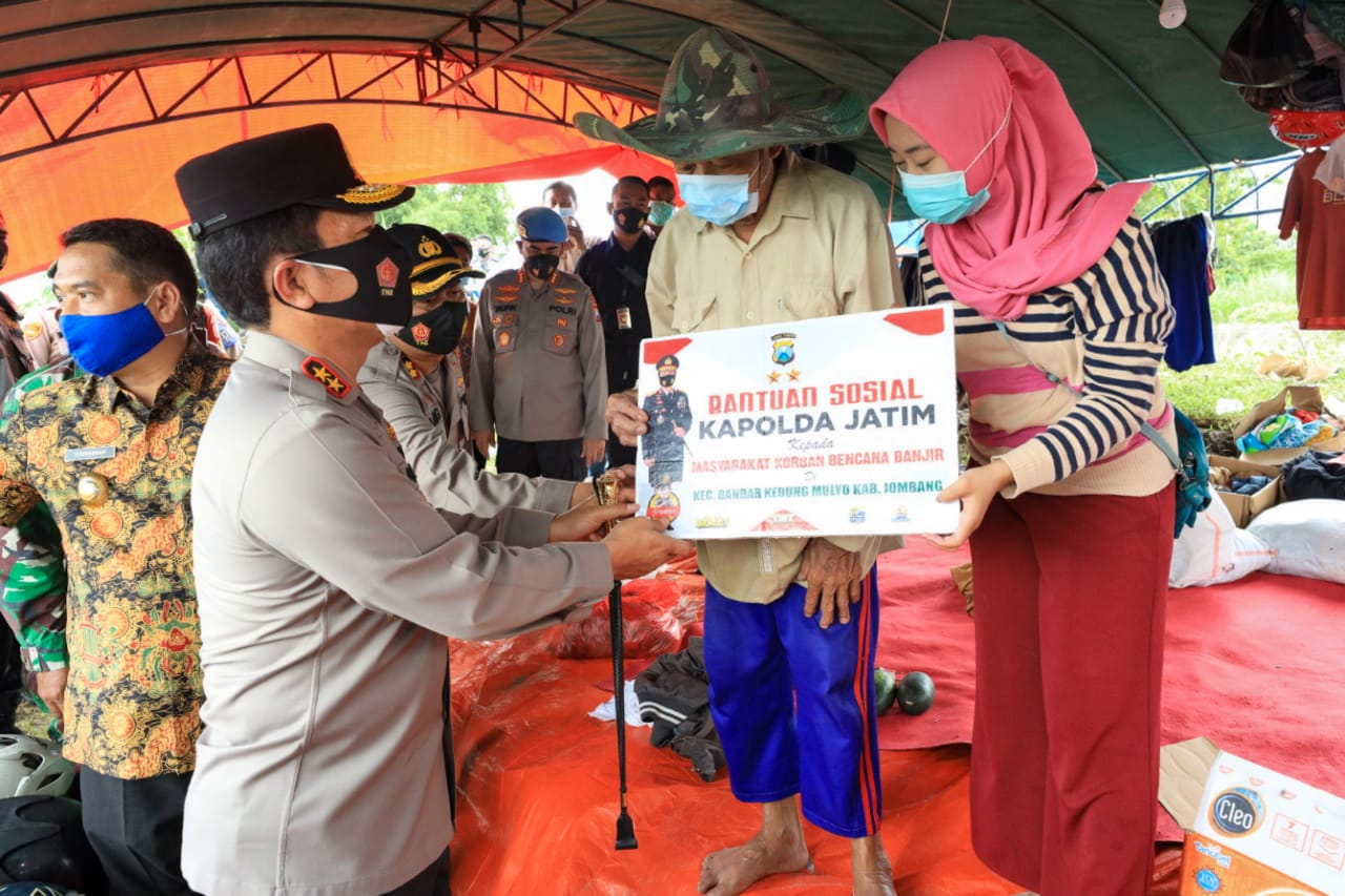 Kemudian, dilaksanakan Penyaluran Bansos dari Kapolda Jatim kepada masyarakat korban bencana banjir kec. Bandar KM kab. Jombang.