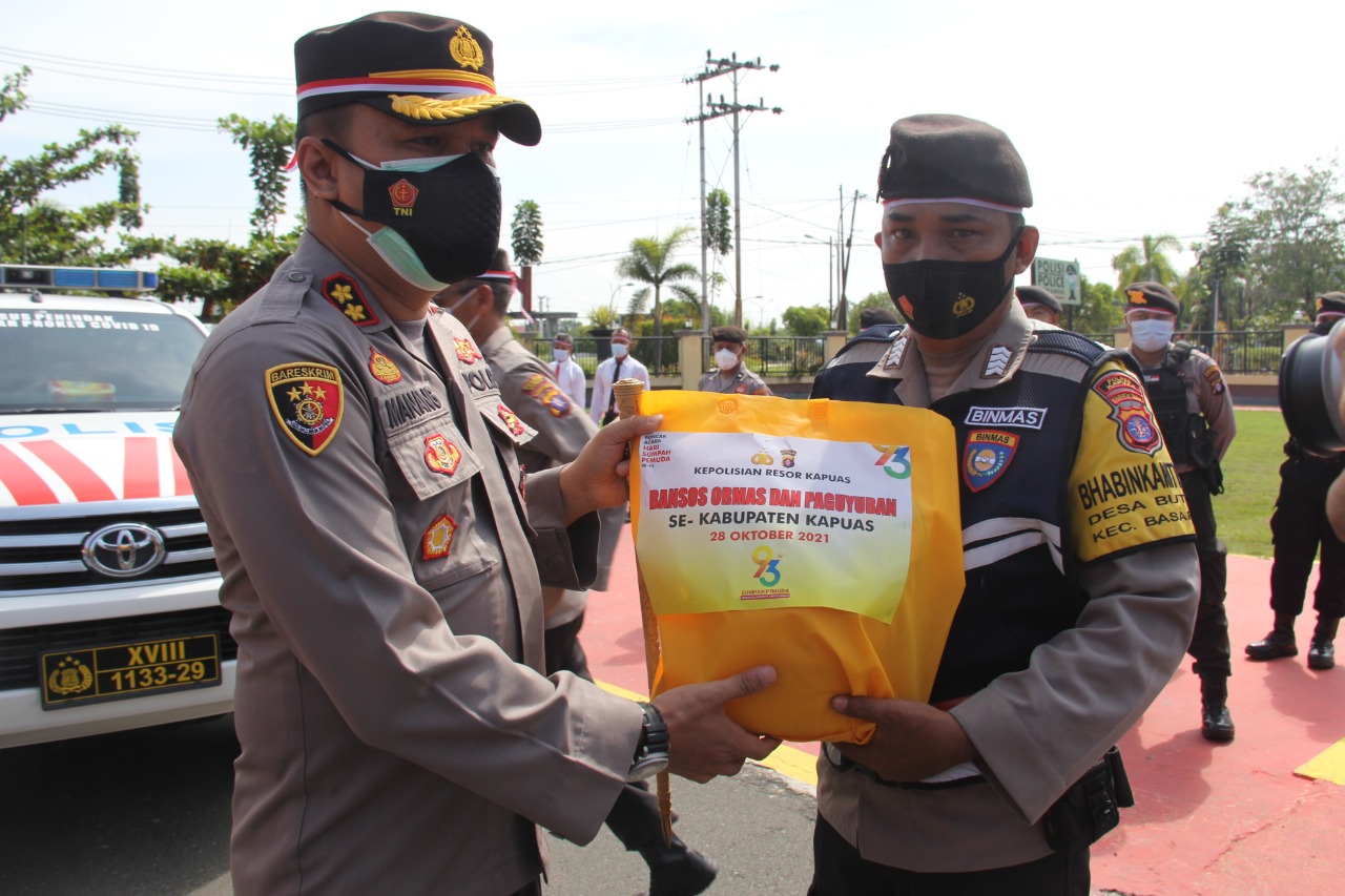 Kapuas,ikagawanews.id – Bertempat di Halaman depan Polres Kapuas, Polda Kalteng dilaksankan kegiatan Upacara hari Sumpah Pemuda dan Deklarasi sumpah Pemuda ke-93 tahun 2021 Serta pemberian Bansos kepada Ormas dan Paguyuban di Kabupaten Kapuas. Kamis (28/10/2021) pukul 08.00 WIB.