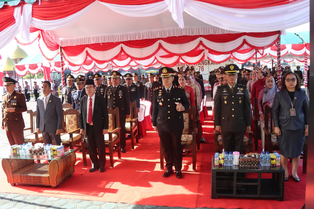 Kapolres Katingan mengatakan, upacara peringatan hari Bhayangkara ke-76 yang berlangsung di Lapangan Akademi Kepolisian (Akpol) Semarang, sebagai Inspektur upacara Presiden Republik Indonesia Ir. H. Joko Widodo, yang didampingi oleh wakil Presiden, Kapolri dan Panglima TNI serta di ikuti secara virtual oleh seluruh Polda dan Polres seluruh Indonesia.
