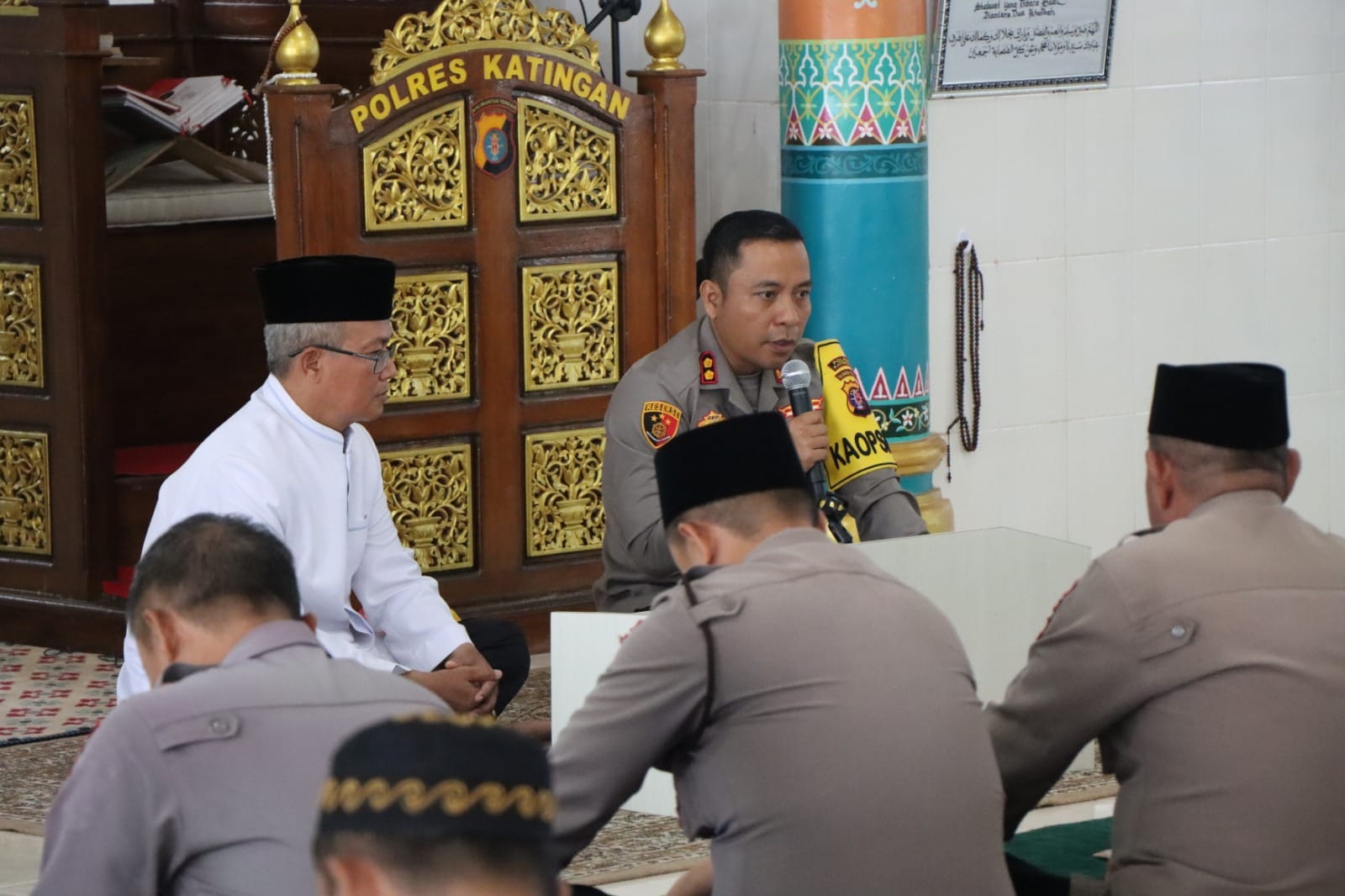 Kapolres Katingan AKBP I Gede Putu W., S.H., S.I.k., M.H. menyampaikan peringatan Isra Mi’raj ini dalam rangka meningkatkan tali silaturahmi dan mengingatkan kita umat Rasulullah akan peristiwa perjalanan Nabi Muhammad SAW ketika menjemput perintah Shalat dari Allah SWT.