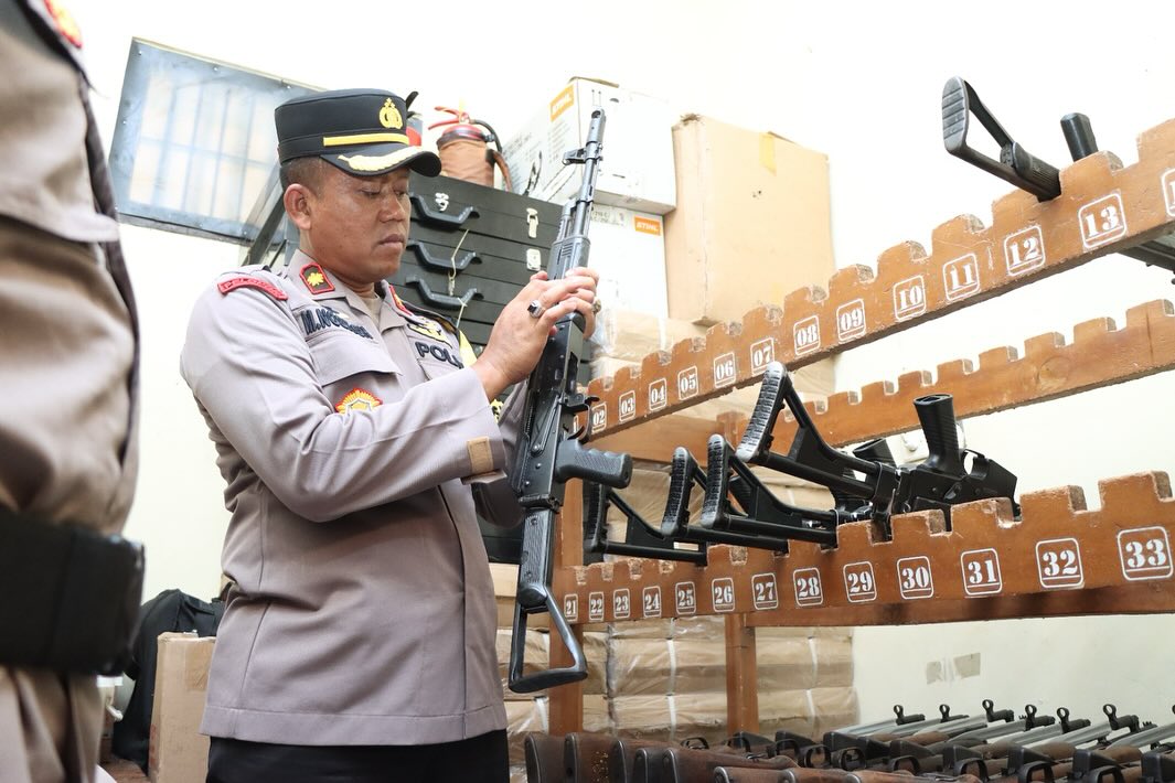 Setelah apel, setiap senjata diperiksa secara mendetail, mulai dari kebersihan, kelayakan amunisi, hingga kelengkapan administrasi. Hal ini dilakukan untuk memastikan senjata dalam kondisi siap pakai dan sesuai dengan prosedur keamanan.