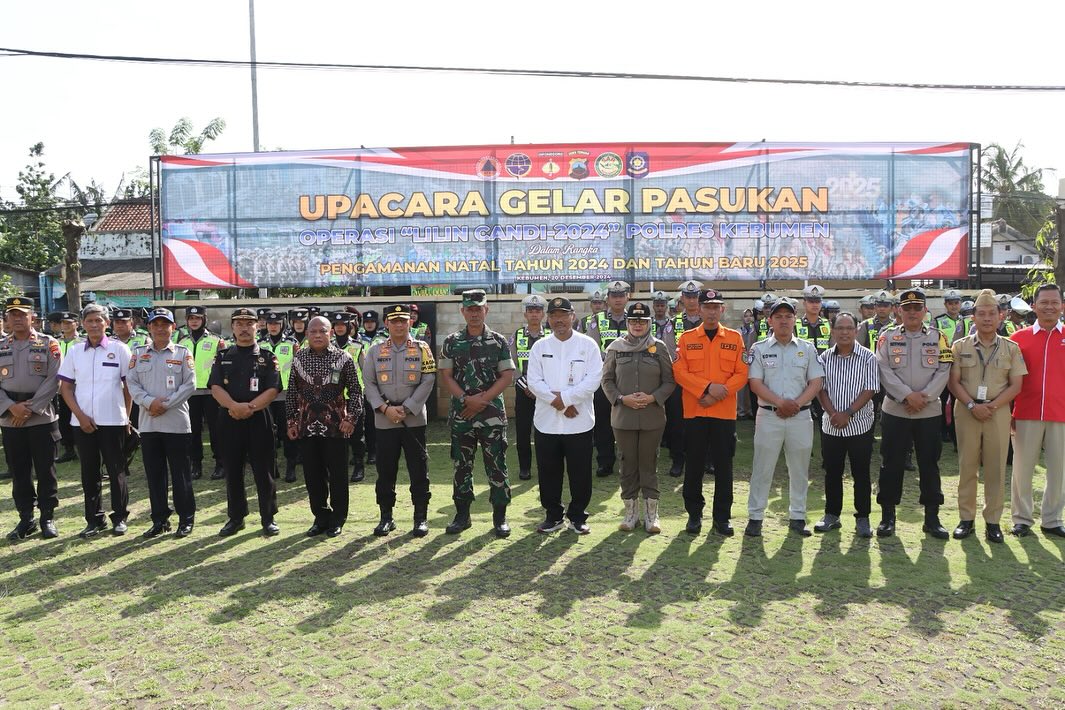 KEBUMEN,ikagawanews.id  – Polres Kebumen melaksanakan Apel Gelar Pasukan Operasi Lilin Candi 2024 pada Jumat, 20 Desember 2024, di halaman Mapolres Kebumen. Kegiatan ini bertujuan untuk memastikan kesiapan personel dan sarana prasarana (sarpras) dalam mendukung pengamanan perayaan Natal 2024 dan Tahun Baru 2025.