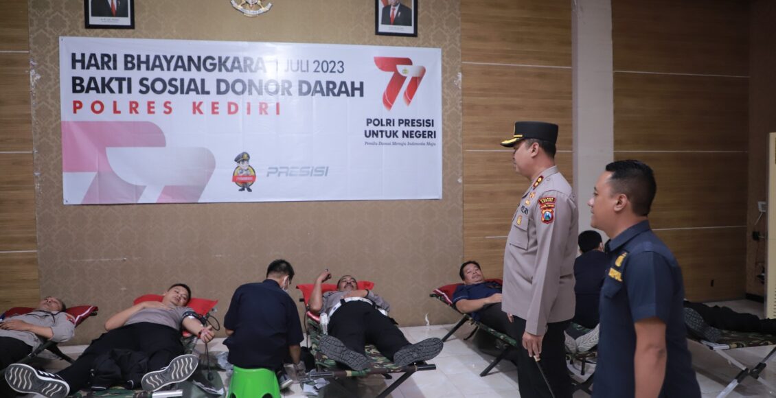 “Pagi ini kami telah melaksanakan giat bakti kesehatan Polres Kediri berupa donor darah dalam rangka peringatan hari Bhayangkara ke-77 tahun 2023 di Aula Jana Nuraga Polres Kediri,” ujar Kapolres Kediri AKBP Agung Setyo Nugroho, S.I.K. melalui Kasidokkes Polres Kediri Aipda Arief Habib, A.Md. Kep., S.H.