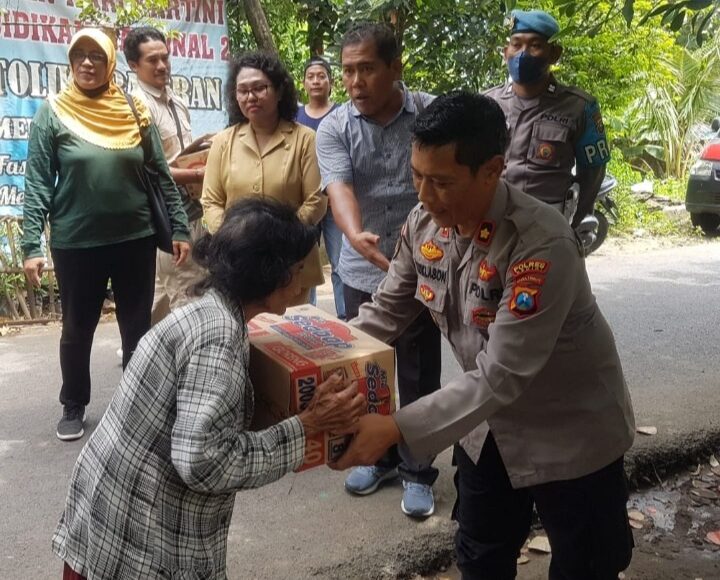 Kapolres Kediri Kota AKBP Wahyudi, S.I.K., M.H. melalui Kapolsek Mojoroto Kompol Mukhlason, S.H. mendatangi korban untuk memberikan bantuan sosial sembako, Selasa siang (10/01/2023).