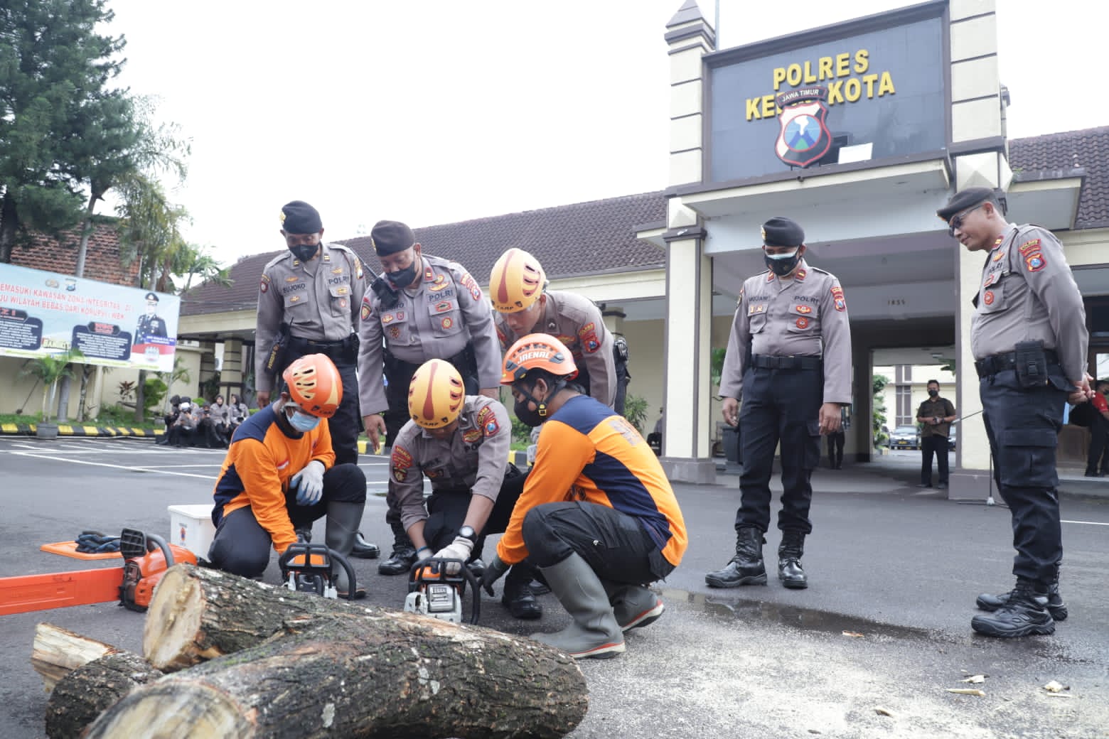 Untuk menghadapi kondisi cuaca extrem Polres Kediri kota bersama Dinas terkait dan stake holder yang ada telah melaksanakan pelatihan peningkatan kemampuan penggunaan alat, serta pola – pola penyelamatan warga bila sewaktu terjadi bencana.