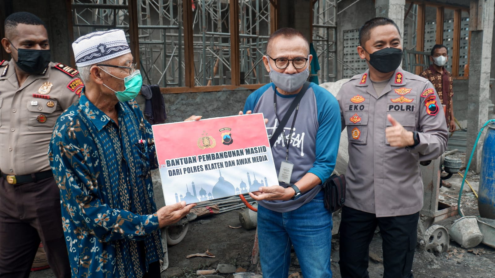 KLATEN,ikagawanews.id – Polres Klaten bersama awak media memberikan bantuan pembangunan Masjid At Taqwa di Dk. Ngentak, Kel. Mojayan, Kab. Klaten, Kamis (28/10/21).