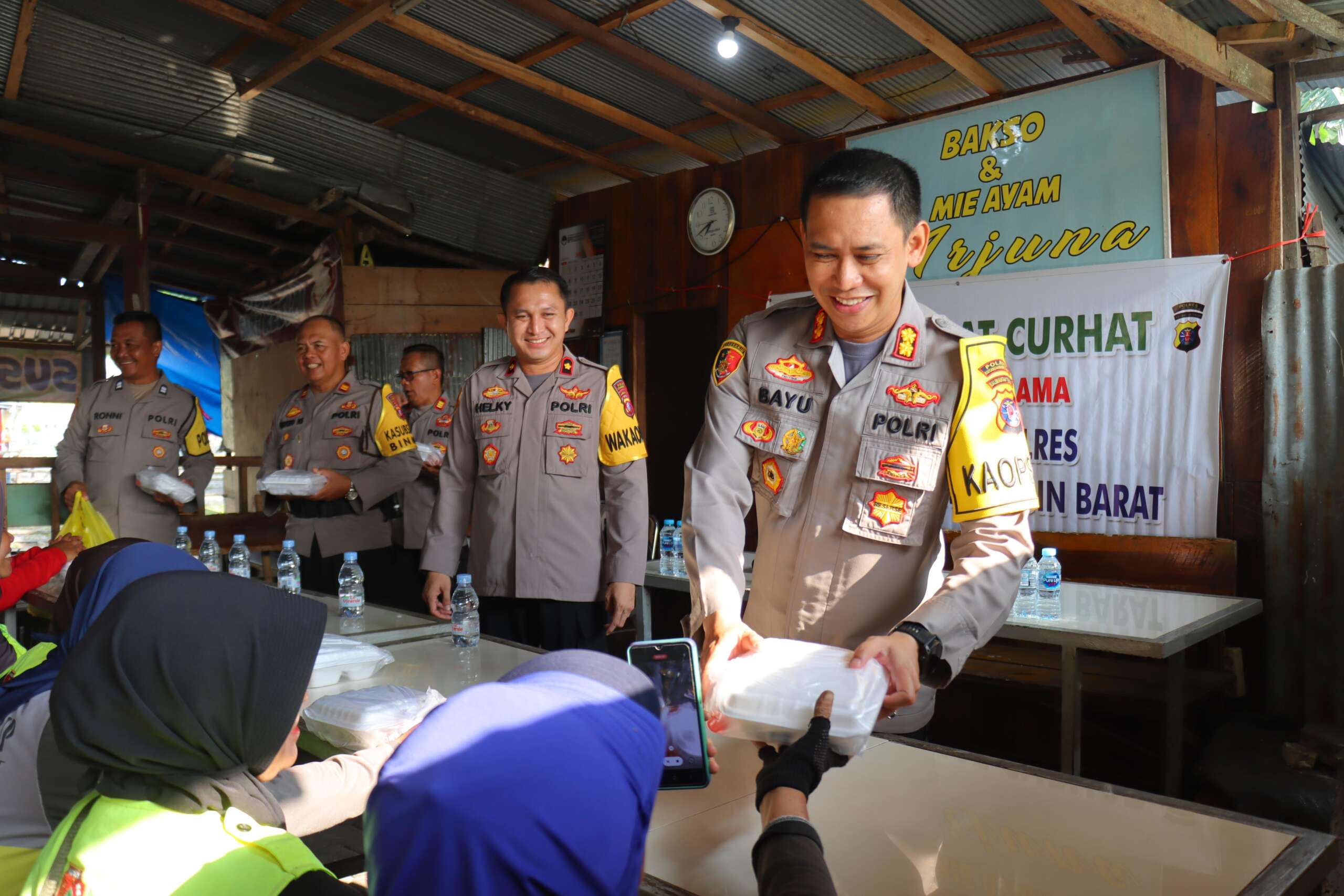 KOTAWARINGIN BARAT,ikagawanews.id – Kapolres Kotawaringin Barat AKBP Bayu Wicaksono, SH., SIK., MSi, melaksanakan kegiatan Jumat Curhat dengan warga masyarakat disebuah Warung makan jalan Ali pandi sarjen kel Raja Pangkalanbun,Jumat  22 Desember 2023 pukul 07.00 wib.
