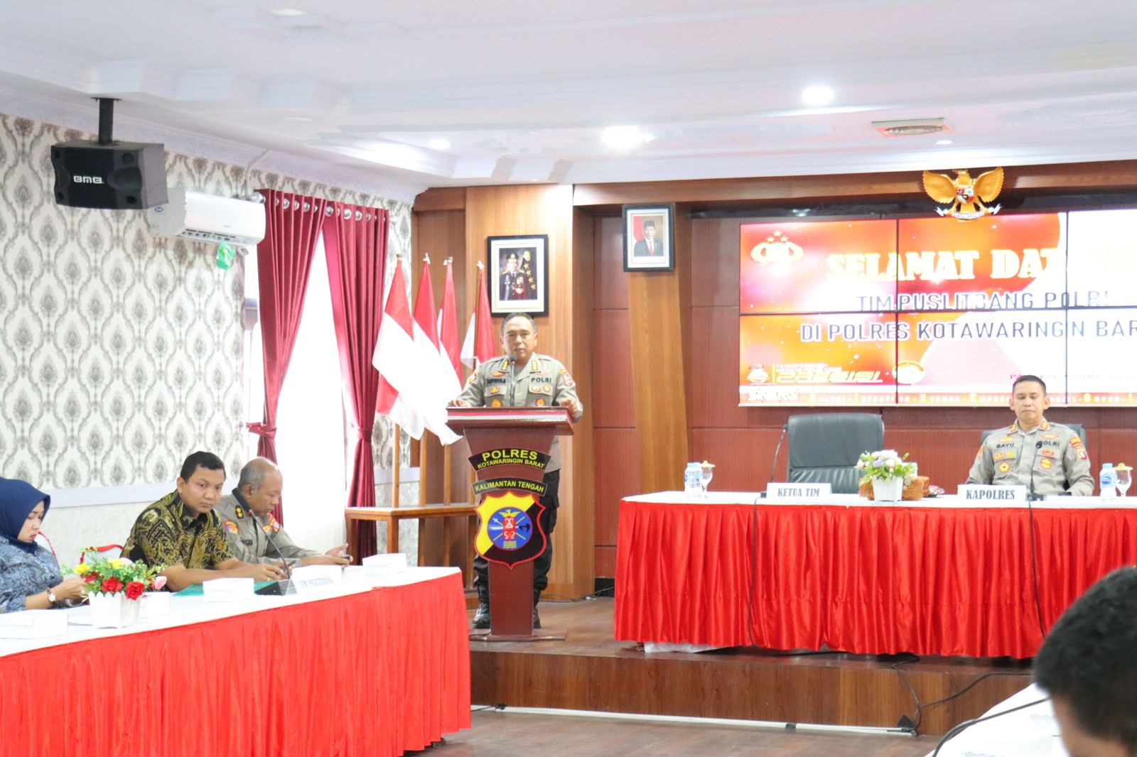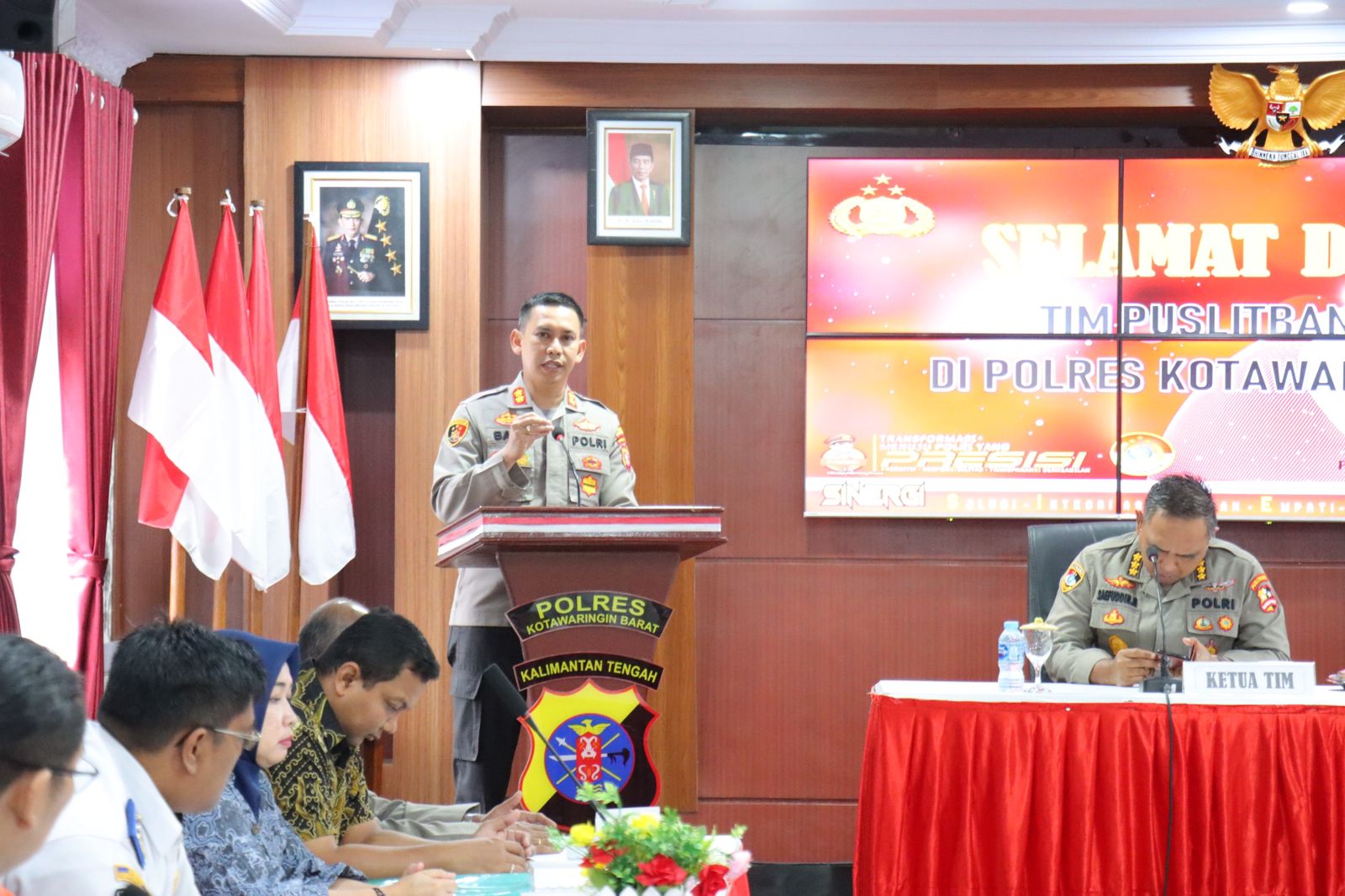 “ Kami mengucapkan selamat datang kepada Kombes Pol Saefudin, SIK beserta tim yang telah datang untuk melakukan penelitian, terkait kejahatan jalanan dan premanisme ini Polres Kotawaringin Barat mengedepankan tindakan preemtif dan preventif termasuk didalamnya bersinergi dengan instansi terkait sehingga mitigasi yang dilakukan dapat tepat sasaran dan efektif” ujar Bayu.