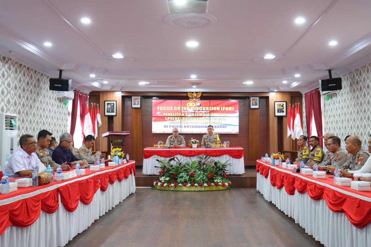 KOTAWARINGIN BARAT, ikagawanews.id – Polres Kobar telah melaksanakan kegiatan pembukaan Forum Group Discussion (FGD) penelitian STIK Lemdiklat Polri yang diikuti oleh Polres Kotawaringin Barat, Polres Sukamara, dan Polres Lamandau.