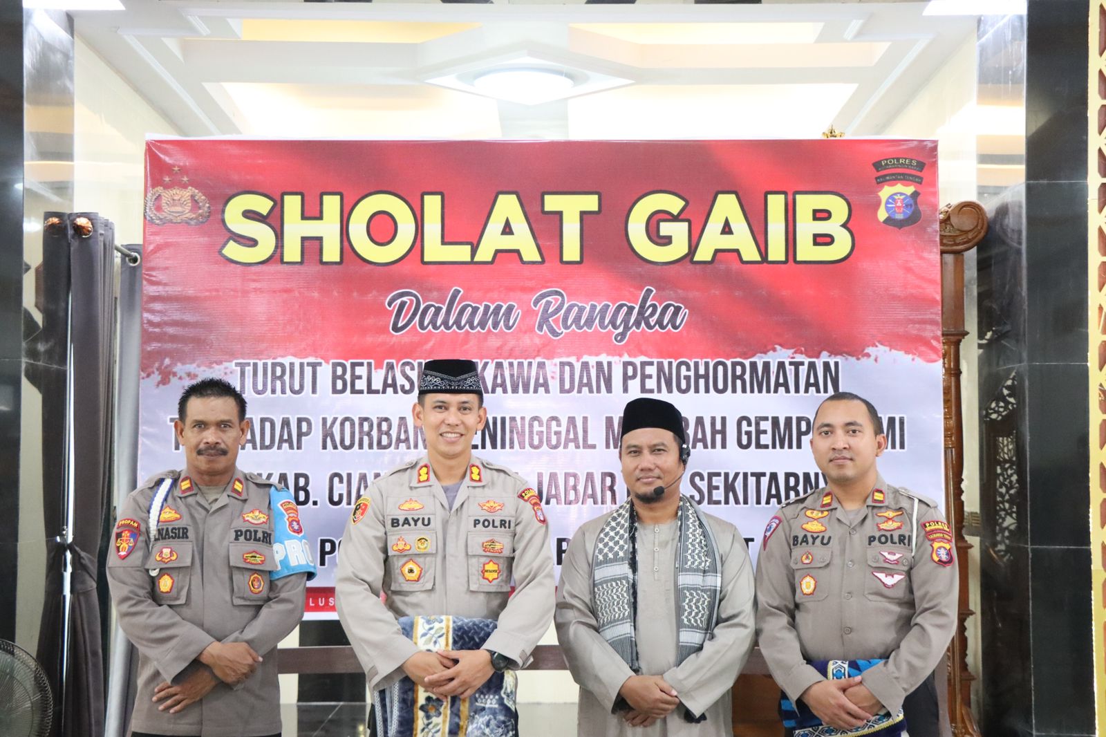 Polres Kobar Gelar Sholat Ghoib Mendoakan Korban Bencana Alam Cianjur di Masjid Sunan Giri