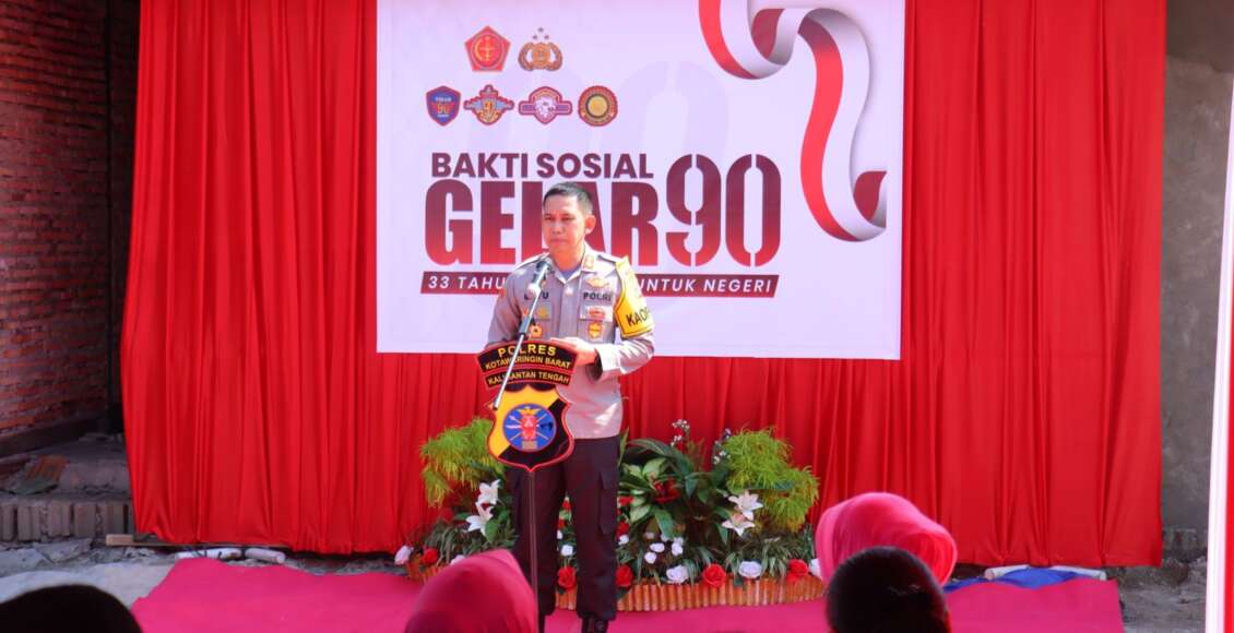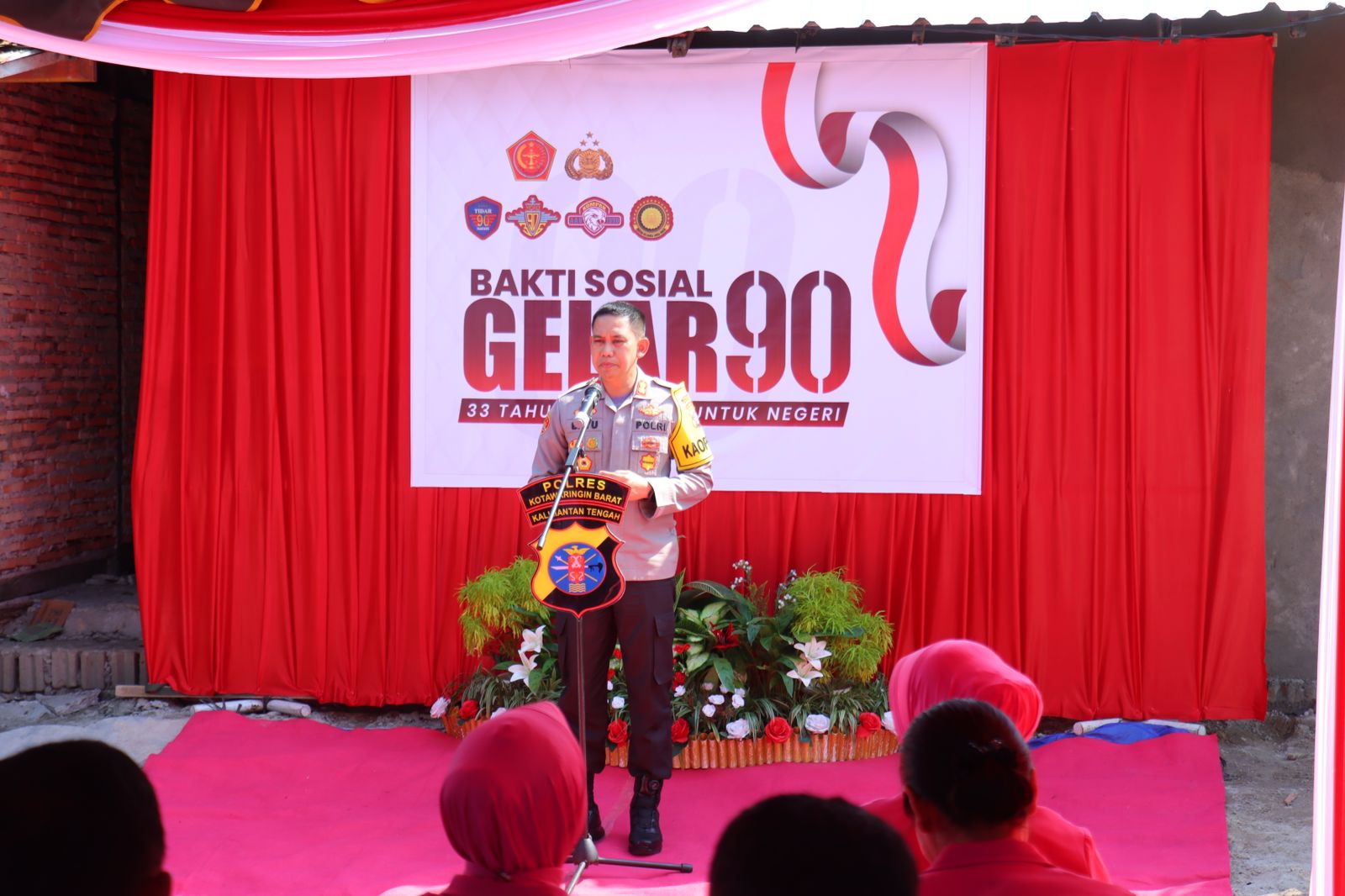 Kapolres Kotawaringin Barat AKBP Bayu Wicaksono, S.H., S.I.K., M.Si. mengatakan bahwa kegiatan bedah rumah dan pendistribusian bantuan sosial ini dilaksanakan dalam rangka Bakti Sosial Gelar 90 untuk memperingati 33 tahun pengabdian untuk negeri.