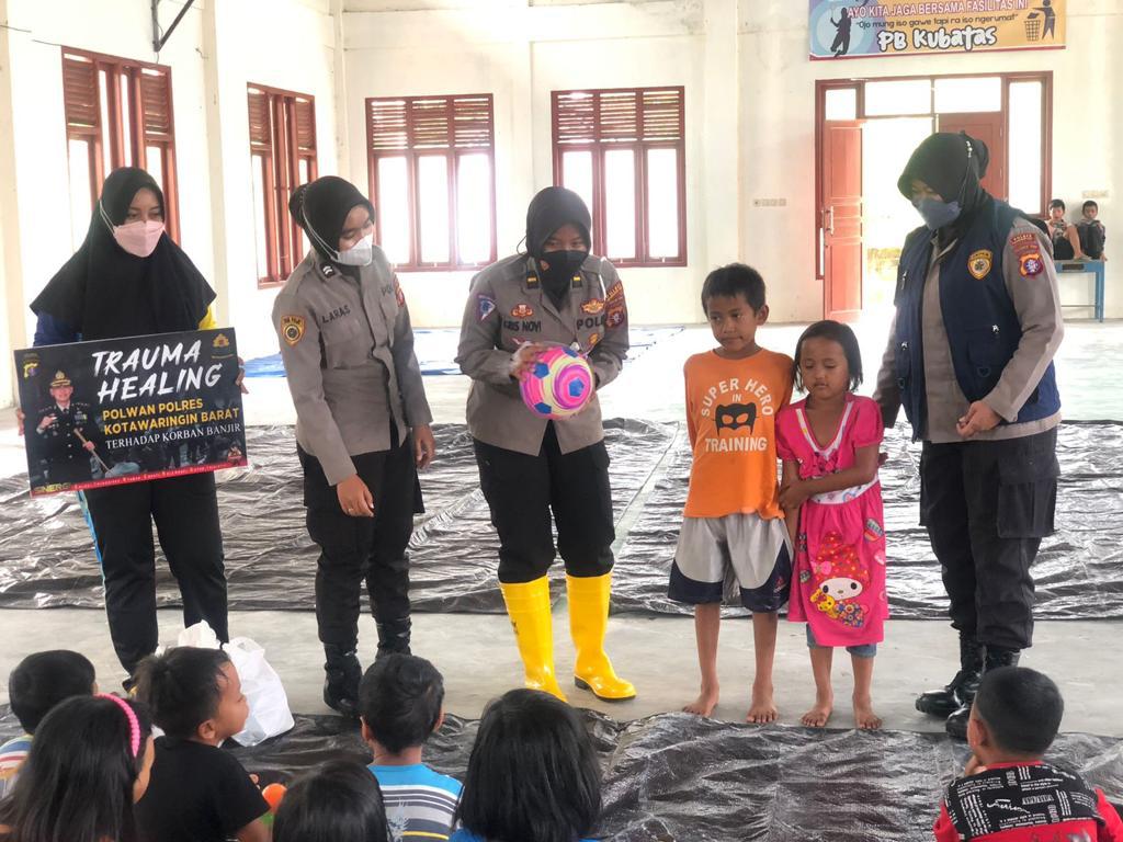 Polres Kobar Melaksanakan Trauma Healing Serta Evakuasi Dan Salurkan Makanan Untuk Korban Terdampak Banjir