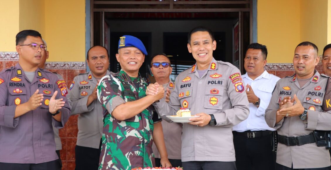 KOTAWARINGIN BARAT,ikagawanews.id – Kapolres Kotawaringin Barat AKBP Bayu Wicaksono, SH. SIK. MSi menerima kejutan pemberian kue tart ucapan selamat Hari Bhayangkara ke 77 dari Dansubdenpom Pangkalan Bun dan anggota,Senin 03 Juli 2023, pukul 10.00 wib,di Mapolres Kotawaringin Barat.