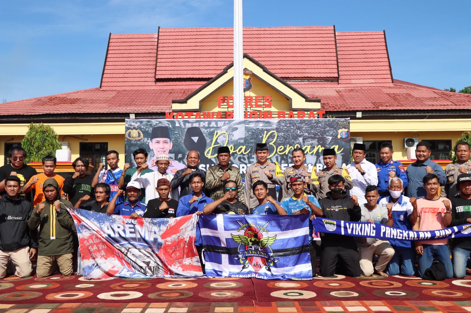 KOTAWARINGIN BARAT,ikagawanews.id – Kapolres Kotawaringin Barat AKBP Bayu Wicaksono,SH.,SIK.,M.Si beserta wakapolres, pju, perwira dan komunitas suporter Sepak Bola Nasional Kotawaringin Barat melaksanakan doa bersama di Lapangan Presisi,Selasa 4 Oktober 2022.