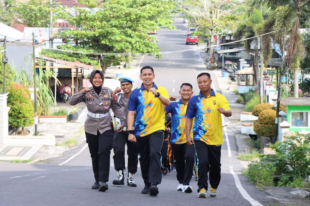 Polres Kotawaringin Barat Gelar Bagi-bagi Sarapan Kepada Masyarakat Sekaligus Jalan sehat