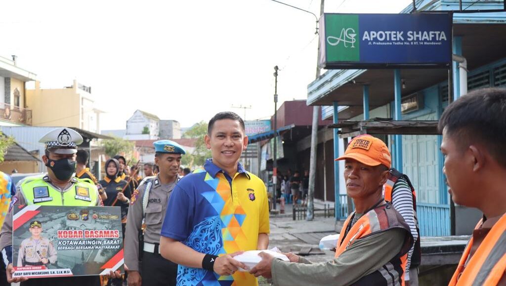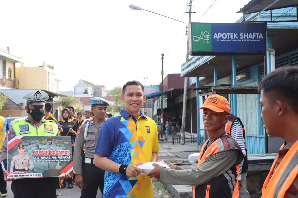 Dalam kegiatan ini juga, Kapolres menggelar Kotawaringin Barat Bagi Sarapan Masyarakat (KOBAR BASAMAS) kepada masyarakat yang berprofesi sebagai petugas kebersihan dan juru parkir.(Red/Hum)