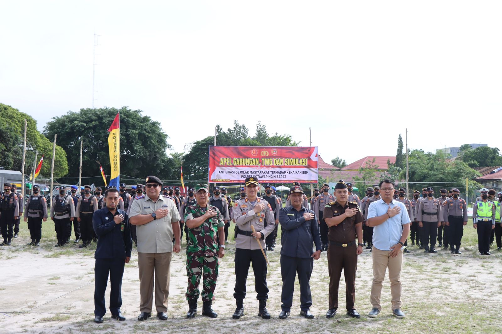 Polres Kotawaringin Barat melaksanakan Apel Gabungan, Tactical Wall Game dan Simulasi Dalam Rangka Anatisipasi Gejolak Mayarakat Terhadap Kenaikan BBM di Kab. Kotawaringin Barat