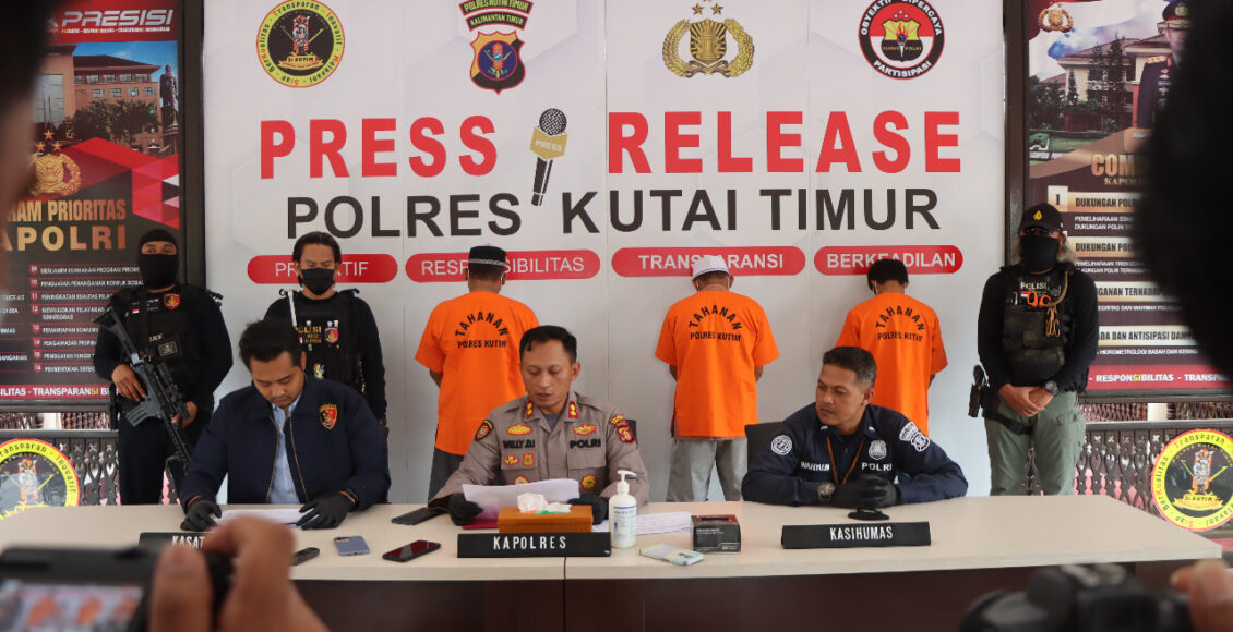 Kapolres Kutai Timur AKBP Welly Djatmoko saat press realese mengatakan para pelaku yang diamankan oleh Unit Opsnal Sat Reskrim Polres Kutim terkait pengaduan korban beberapa waktu yang lalu.