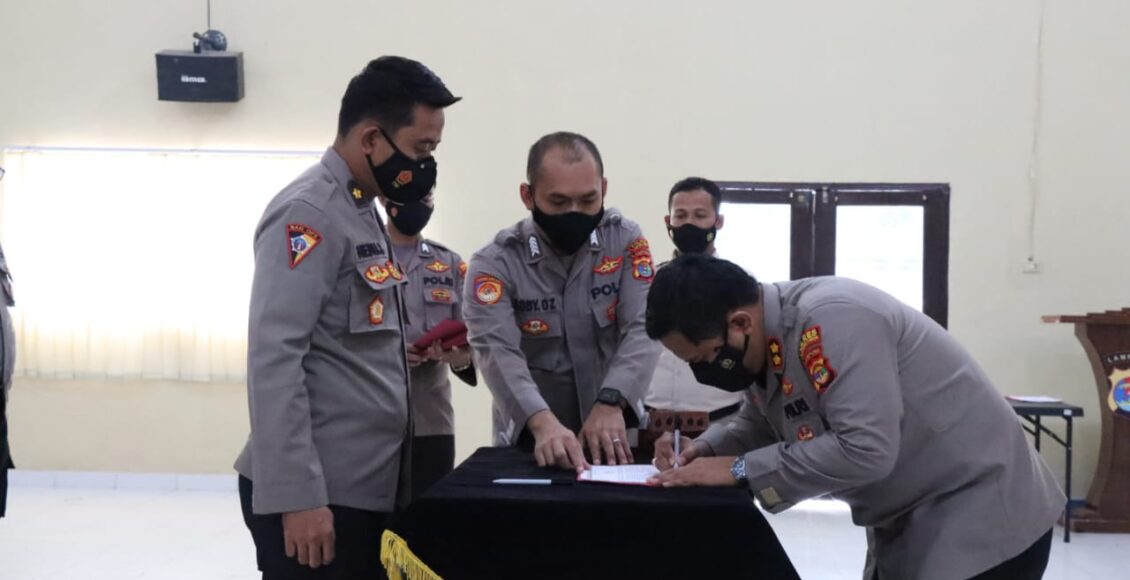 Penandatangan Fakta Integritas Personil Polres Lampung Timur di Aula Tribrata Polres dalam Membangun Zona Integritas menuju WBK. (24/1/2022)