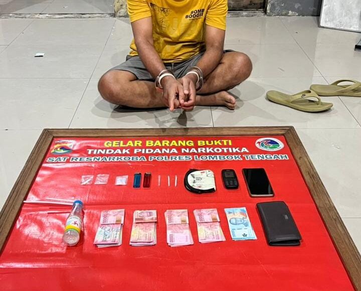 Lombok Tengah (NTB),ikagawanews.id – Satuan Reserse Narkoba Polres Lombok Tengah berhasil mengamankan seorang pria insial L diduga pengedar Narkotika jenis Sabu di Kecamatan Jonggat.