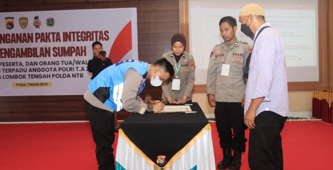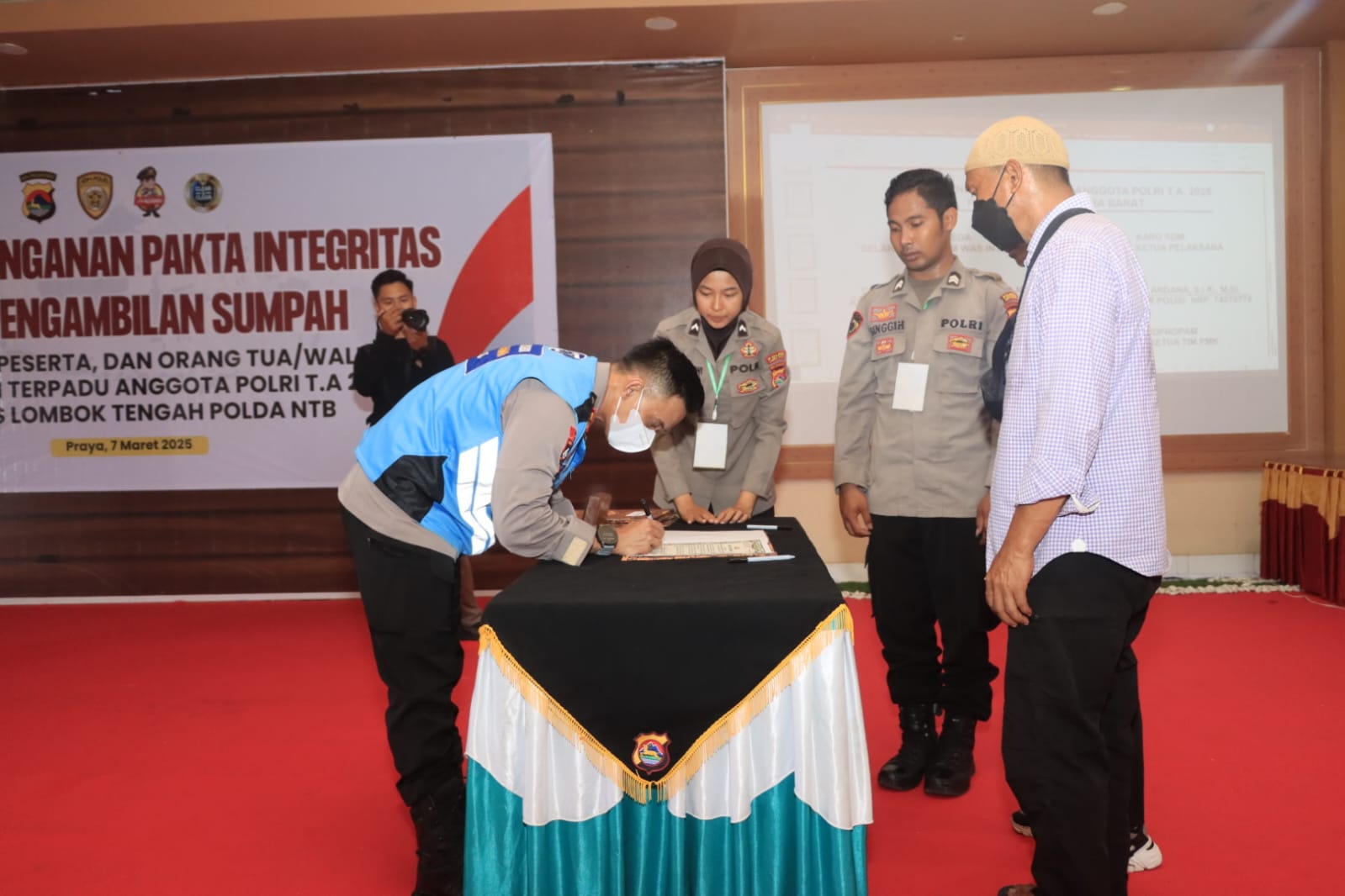 “Pengambilan sumpah dan penandatanganan pakta integritas ini merupakan salah satu bentuk keterbukaan Polri dalam proses seleksi penerimaan calon anggota Polri,” kata Kapolres Lombok Tengah AKBP Iwan Hidayat, S.I.K