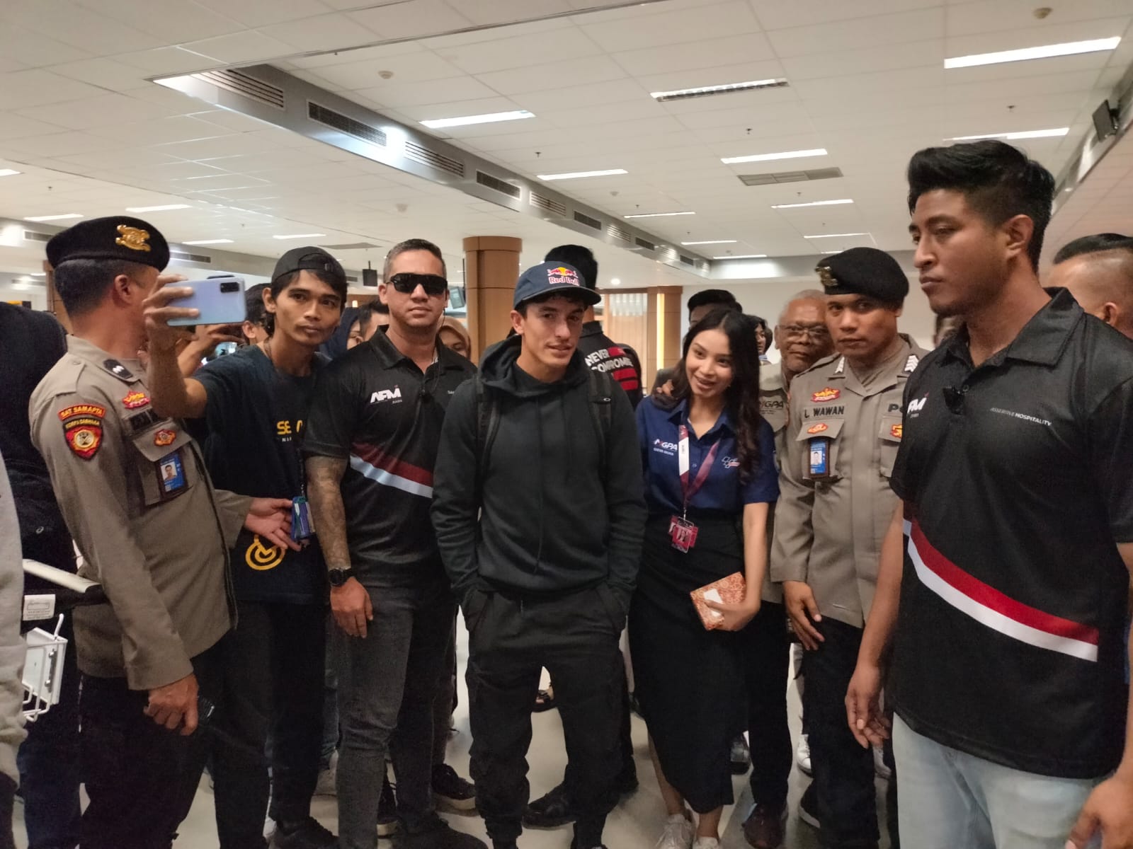 “ Ada 6 pembalap yang tiba di bandara diantaranya Marc Marquez, Marco Bezzecchi, Fabio Digi, Luca Marini, Alex Rins dan Raul Fernades, masing -masing para pembalap didampingi crew dan official, ujar Kapolres Lombok Tengah AKBP Iwan Hidayat SIK, melalui Kasubsektor Bizam IPDA M. Fajri, SH, Rabu (26/9).