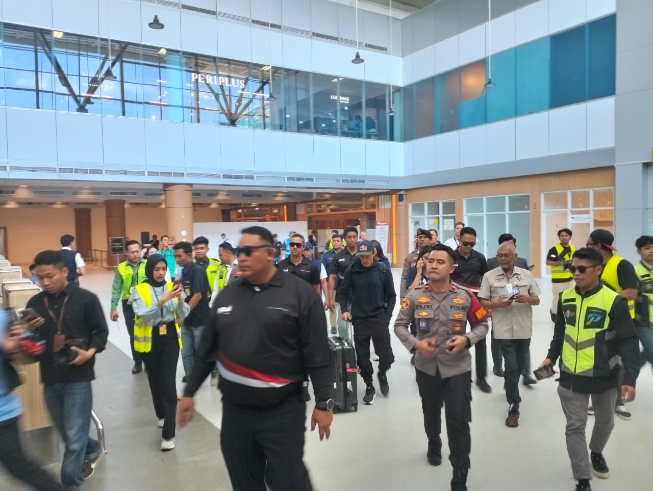 Fajri mengatakan para pembalap, crew dan official tiba di bandara kemarin sekitar pukul 14.30 Wita menggunakan garuda Indonesia dan super jet air dan kami melakukan pengamanan dan pengawalan mulai dari pintu masuk kedatangan bandara hingga menuju kendaraan yang sudah disiapkan panitia.
