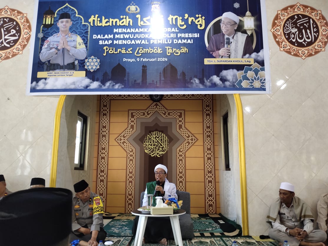Kegiatan peringatan Isra Mi’raj ini mengundang penceramahTGH. L. Supardan Kholil, S.Ag bertemakan “Dengan Hikmah Isra Mi’raj menanamkan Moral dalam mewujudkan Polri Presisi siap mengawal Pemilu Damai”, acara tersebut dihadiri oleh para personel Polres Lombok Tengah dan Bhayangkari.