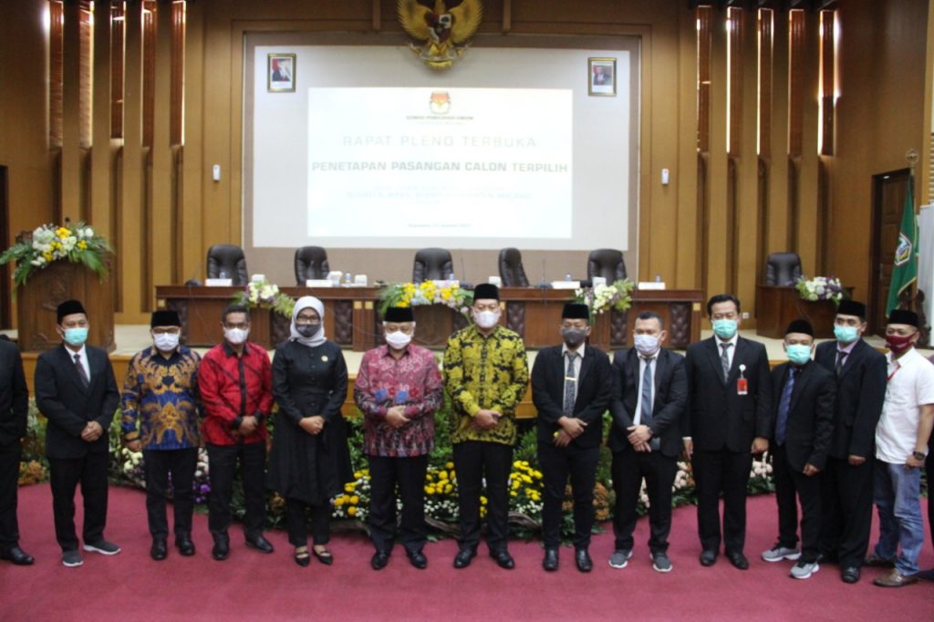 Kemudian, dilakukan penandatanganan BA dan SK Penetapan Calon Terpilih Pemilihan Bupati dan Wakil Bupati Malang Tahun 2020 oleh Komisioner KPU Kab. Malang.