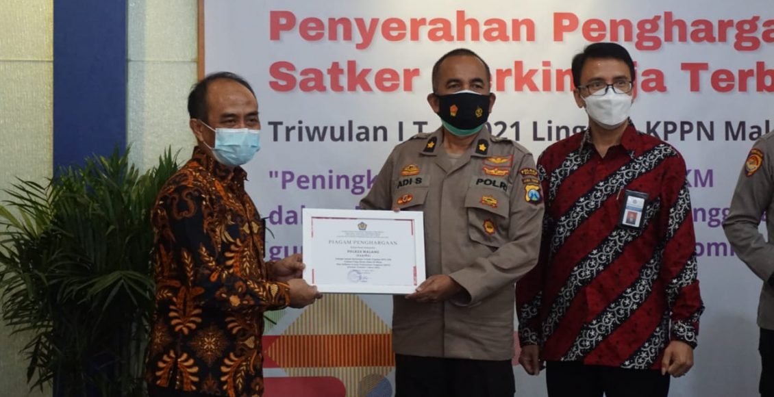 Malang,IKAGAWANEWS.ID – Kepala Kepolisian Resort(Kapolres) Malang AKBP Hendri Umar, S.I.K., M.H. menghadiri pemberian penghargaan PRISMA, Satuan Kerja Terbaik Triwulan I TA.2021 diikuti oleh 15 Satuan Kerja dilingkup KPPN Malang penerima piagam penghargaan. di Aula pertemuan KPPN Malang Jl. Merdeka Selatan Malang 15 April 2021.