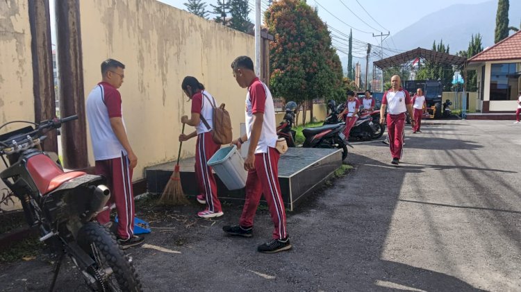 Apel dimulai pukul 08.00 WITA dengan semangat kebersamaan yang tinggi dari seluruh peserta. Setelah apel, kegiatan dilanjutkan dengan gotong royong membersihkan area Mako Polres. Fokus utama kegiatan ini tidak hanya pada kebersihan fisik, tetapi juga pada upaya menciptakan suasana kerja yang sehat dan nyaman bagi seluruh anggota.