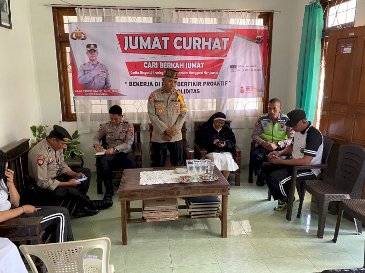 MANGGARAI,ikagawanews.id Dalam rangka menjalin silaturahmi dan mempererat kerjasama dengan masyarakat, Polres Manggarai menggelar kegiatan “Jumat Curhat Cari Berkah” di Susteran Vocacionis Sister, Kelurahan Watu, Kecamatan Langke Rembong, Kabupaten Manggarai. Kegiatan yang berlangsung pada pukul 09.00 WITA ini dipimpin oleh Wakapolres Manggarai, KOMPOL Karel Leokuna, S.Kom, M.M., dan dihadiri oleh KBO Samapta, IPDA I Wayan Guna, serta Kepala Biarawan Superior Sr. Alfreda Zamur, SDV, bersama 25 orang biarawati,Jumat, 13 September 2024 .