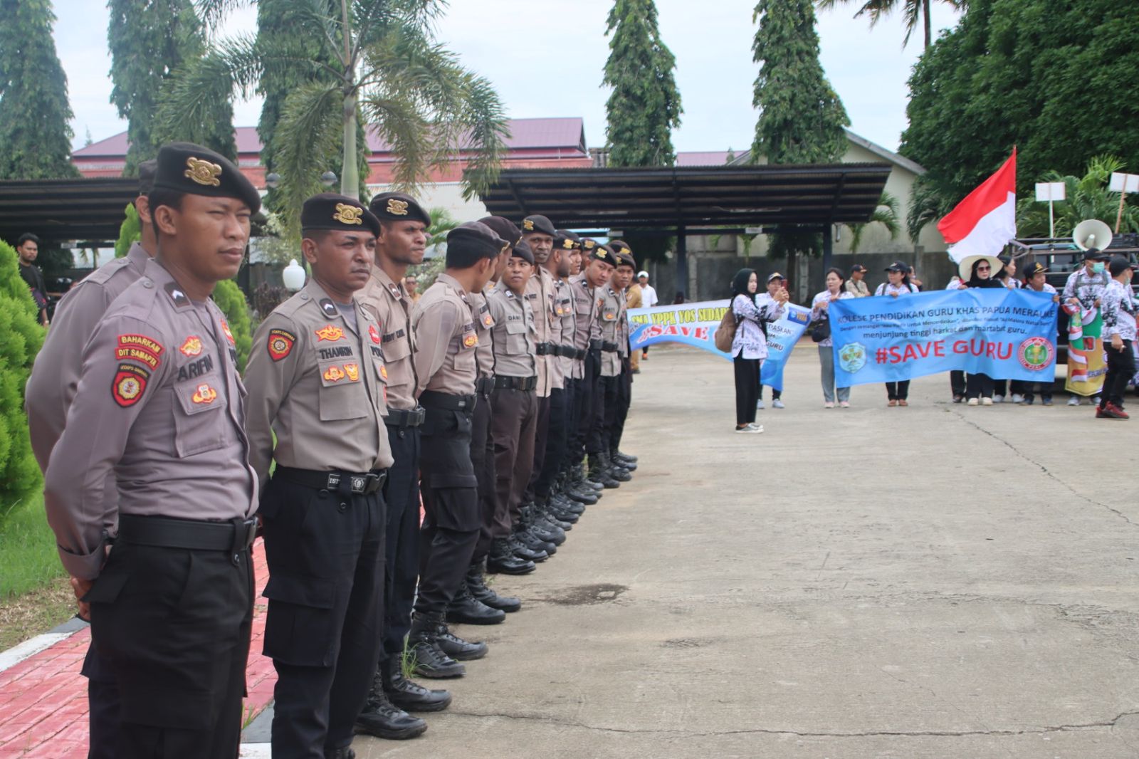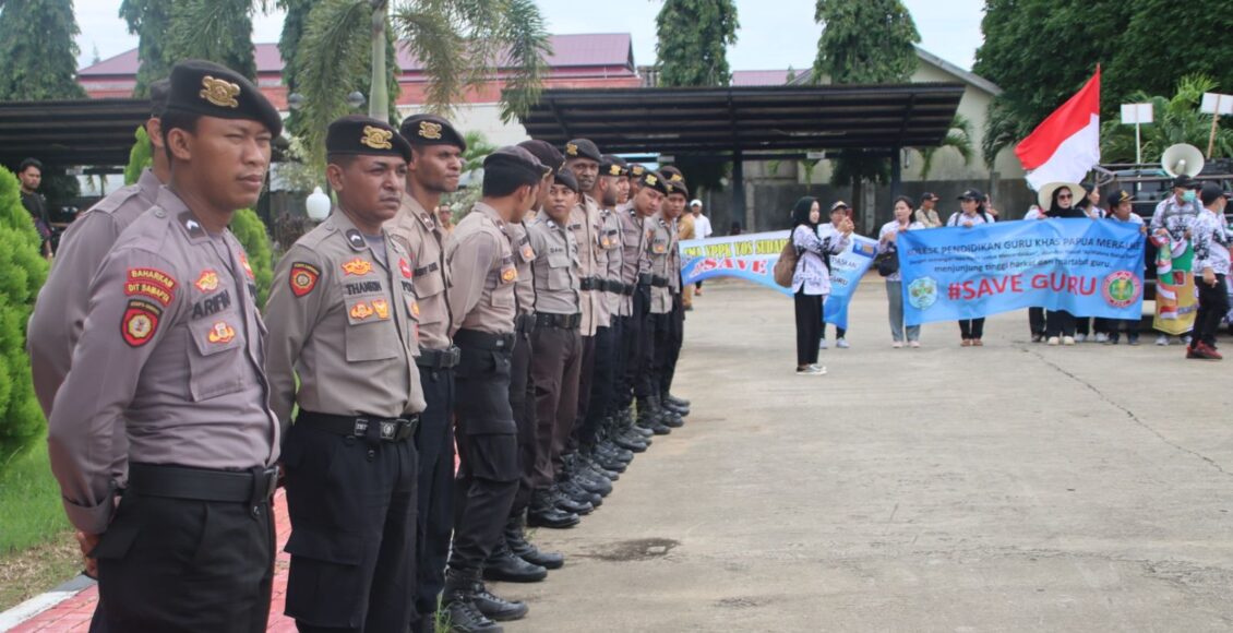Polres Merauke amankan dan kawal Aksi demo damai para Guru – guru di Merauke