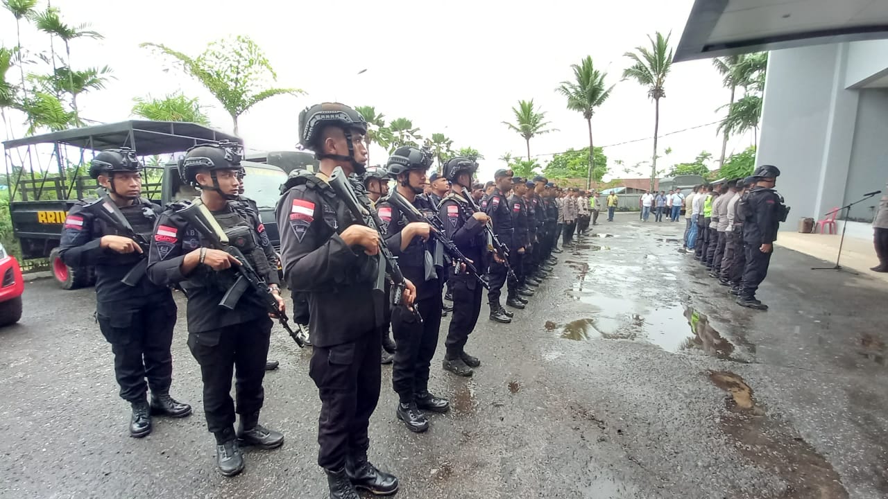 Polres Merauke dan Brimob apel pengamanan Rapat pleno Rekapitulasi KPU tingkat Kabupaten hari kedua