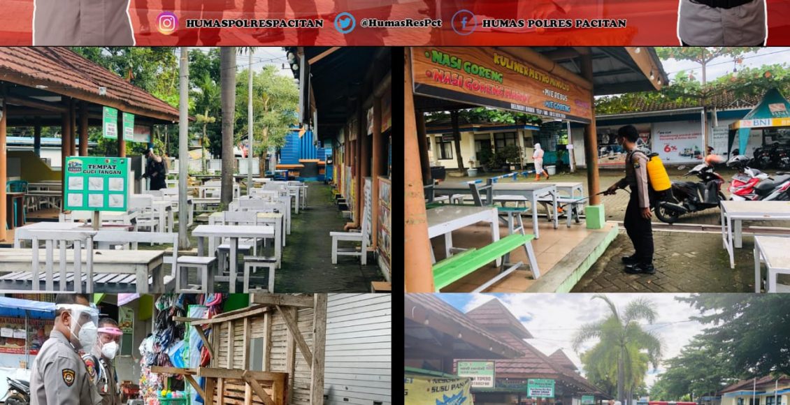 Untuk diketahui, uraian kegiatan di mulai pada pukul 08.00 Wib, melaksanakan Penyemprotan di lapak kuliner pasar Minulyo Kec./ Kab. Pacitan didahului dengan arahan kepada anggota selama melaksanakan tugas wajib memakai masker dan dalam keadaan steril dan tetap mematuhi protokol kesehatan.