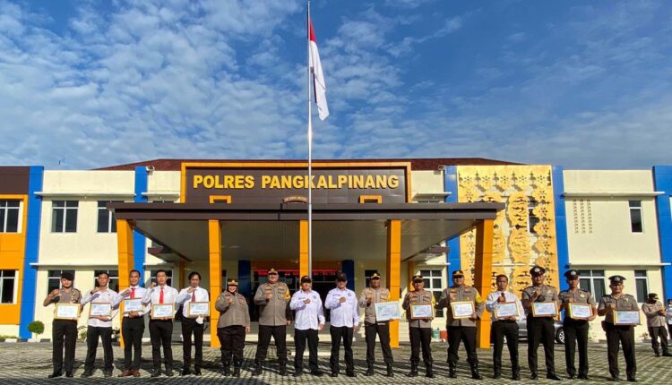 Penghargaan ini diberikan kepada Kapolres Pangkalpinang AKBP Dwi Budi Murtiono, S.IK M.H, Kapolsek Bukit Intan AKP Ferey Hidayat, S.IK, Kapolsek Pangkalan Baru AKP Djoko Moertono, dan 8 Personil Polsek jajaran Polres Pangkalpinang.