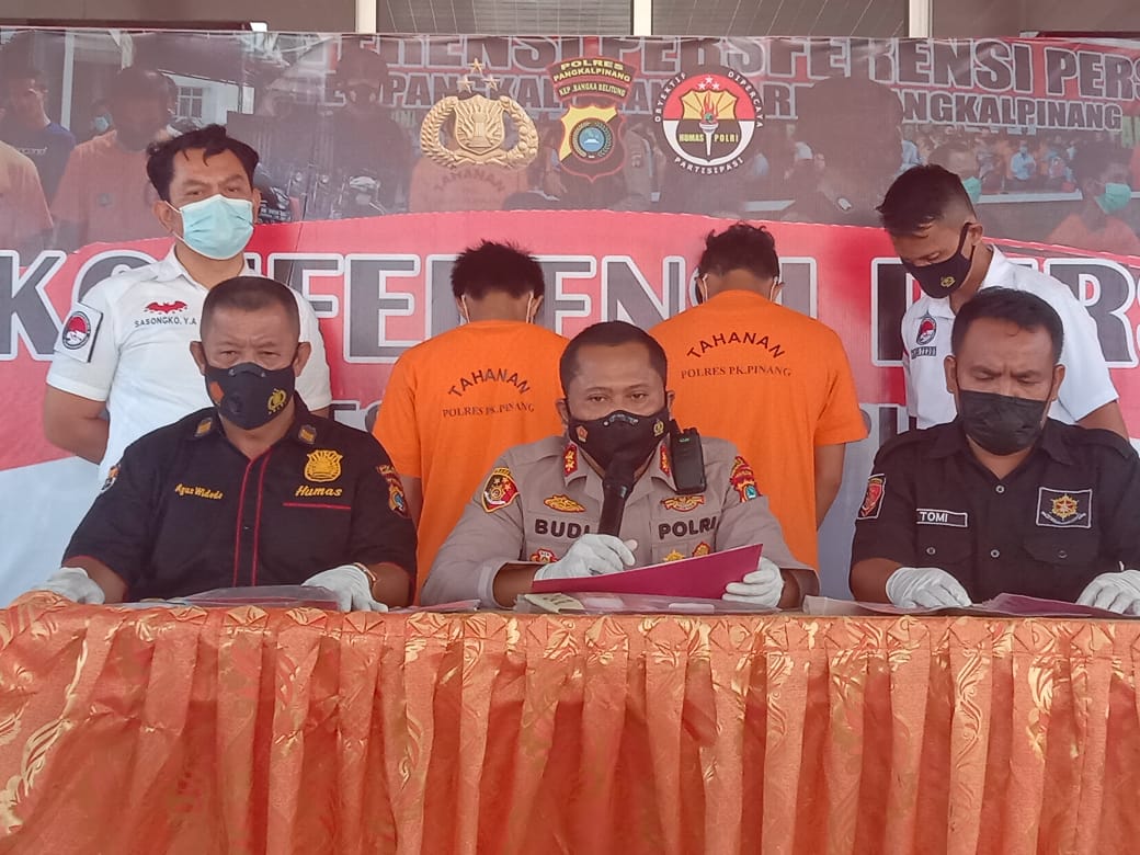 Kapolres Pangkalpinang AKBP Dwi Budi Murtiono, S.IK M.H mengungkapkan saat Konferensi Pers Keempat tersangka ini diamankan di dua lokasi dan waktu yang berbeda. Dari keempatnya berhasil diamankan barang bukti berupa sabu seberat 31,47 gram dan ganja seberat 0,48 gram. Penangkapan pertama dilakukan pada ND (23), dan AT (38) yang keduanya merupakan narapidana, serta SN (21) warga Kelurahan Pemali, Kabupaten Bangka yang merupakan satu jaringan.