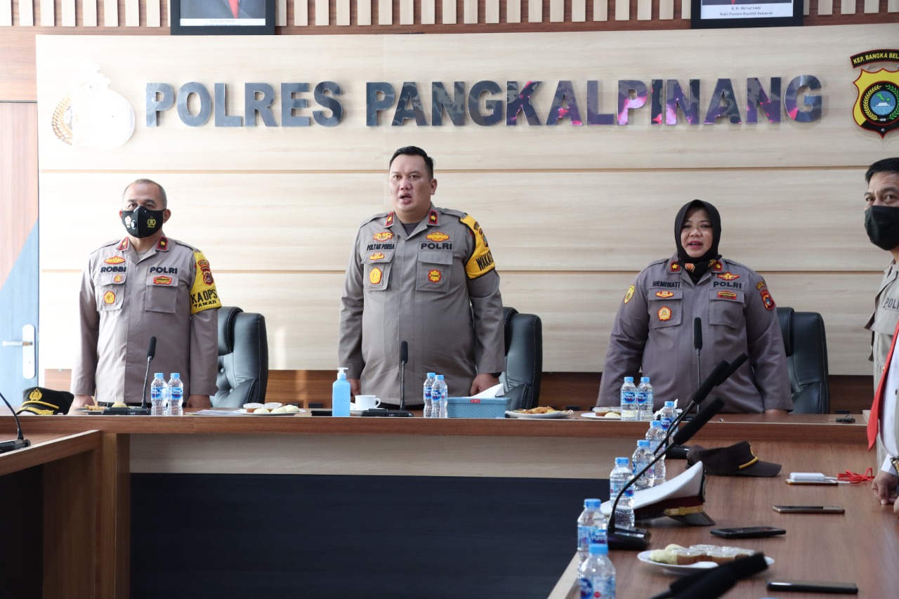 Kegiatan Zoom Meeting dipimpin Wakapolres Pangkalpinang KOMPOL Poltak S.T. Purba, S.I.K didampingi Kabag SDM KOMPOL Remiwati dan Kapolsek Taman Sari KOMPOL Robby Nurdianto, S.H M.H, dan seluruh PJU Polres Pangkalpinang.