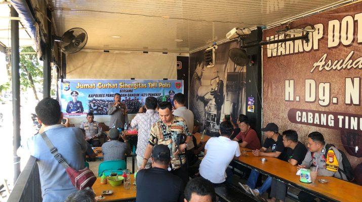 PANGKEP,ikagawanews.id – Wakapolres Pangkep Kompol H. Muh. Thamrin, S.H., didampingi para PJU Polres Pangkep melaksanakan giat Jum’at Curhat Sinergitas TNI POLRI bersama warga masyarakat di Warkop Dottoro Kel.Mappasaile Kec.Pangkajene Kab. Pangkep . Jum’at, (16/02/24).