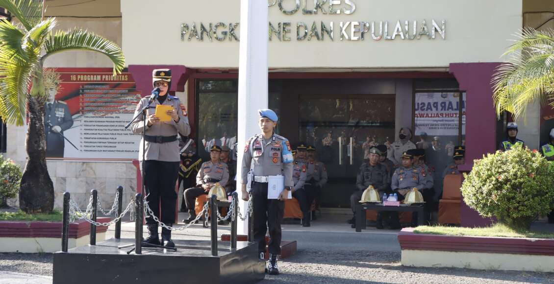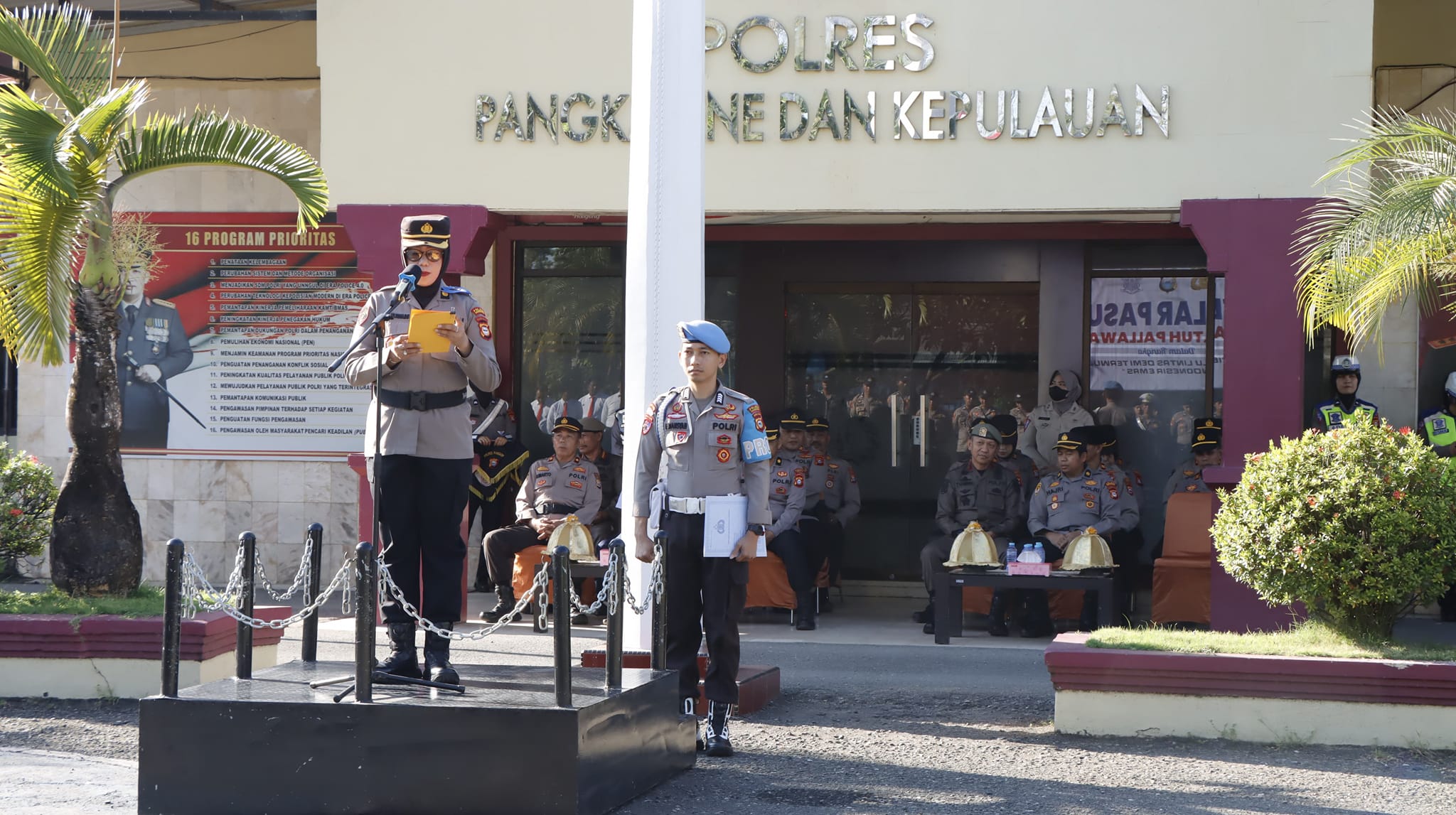 Bertindak selaku pemimpin apel, Kapolres Pangkep yang diwakili oleh Plt. Wakapolres Pangkep, KOMPOL Hj. Andi Husnaeni, S.Sos., M.Si., sekaligus membacakan amanat seragam Kapolda Sulsel, selaku perwira apel Kasat Lantas Polres Pangkep AKP Jumadi, S.I.P., komandan apel Kanit Kamsel Sat Lantas Polres Pangkep IPDA Yushar.