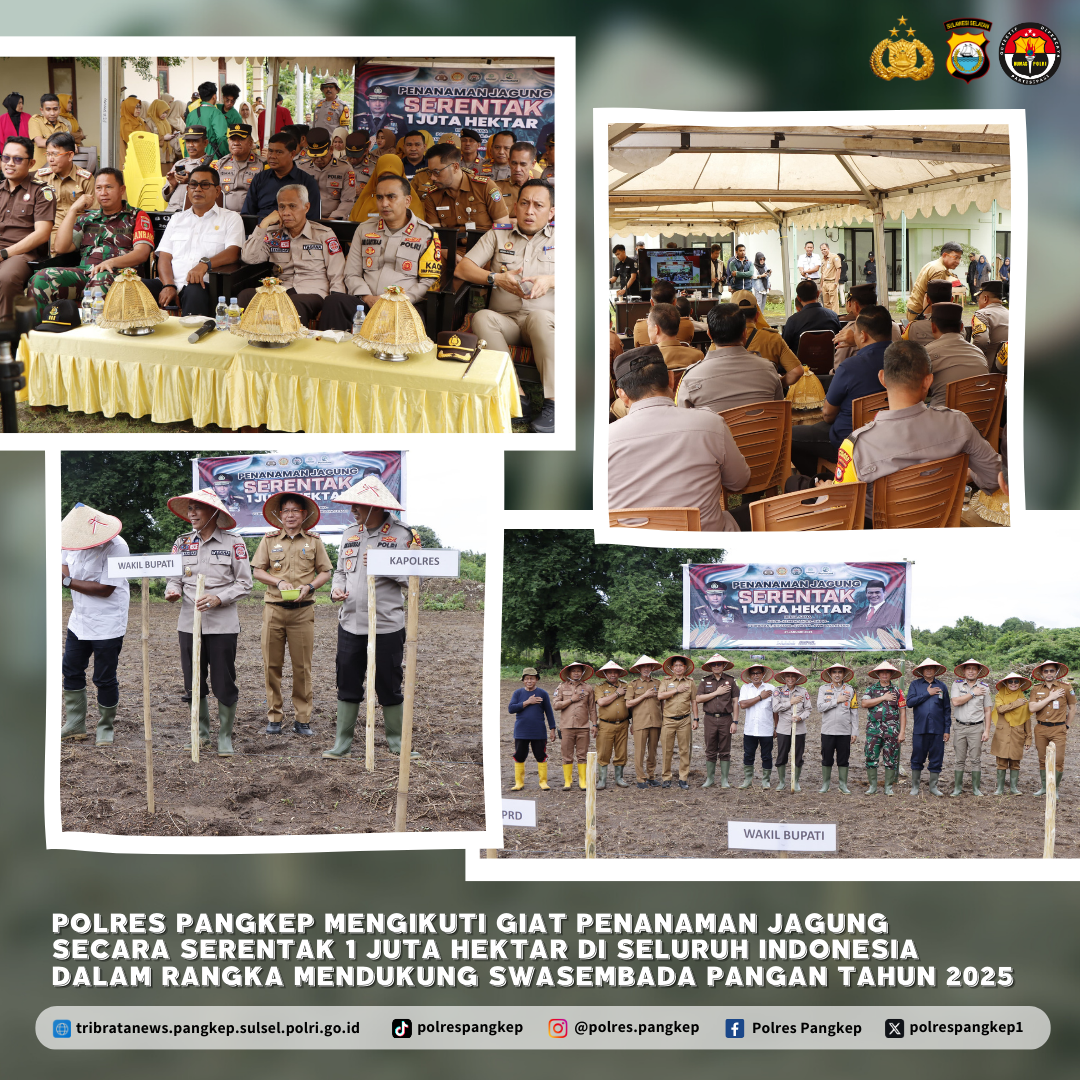 POLRES PANGKEP MENGIKUTI GIAT PENANAMAN JAGUNG SECARA SERENTAK 1 JUTA HEKTAR DI SELURUH INDONESIA DALAM RANGKA MENDUKUNG SWASEMBADA PANGAN TAHUN 2025