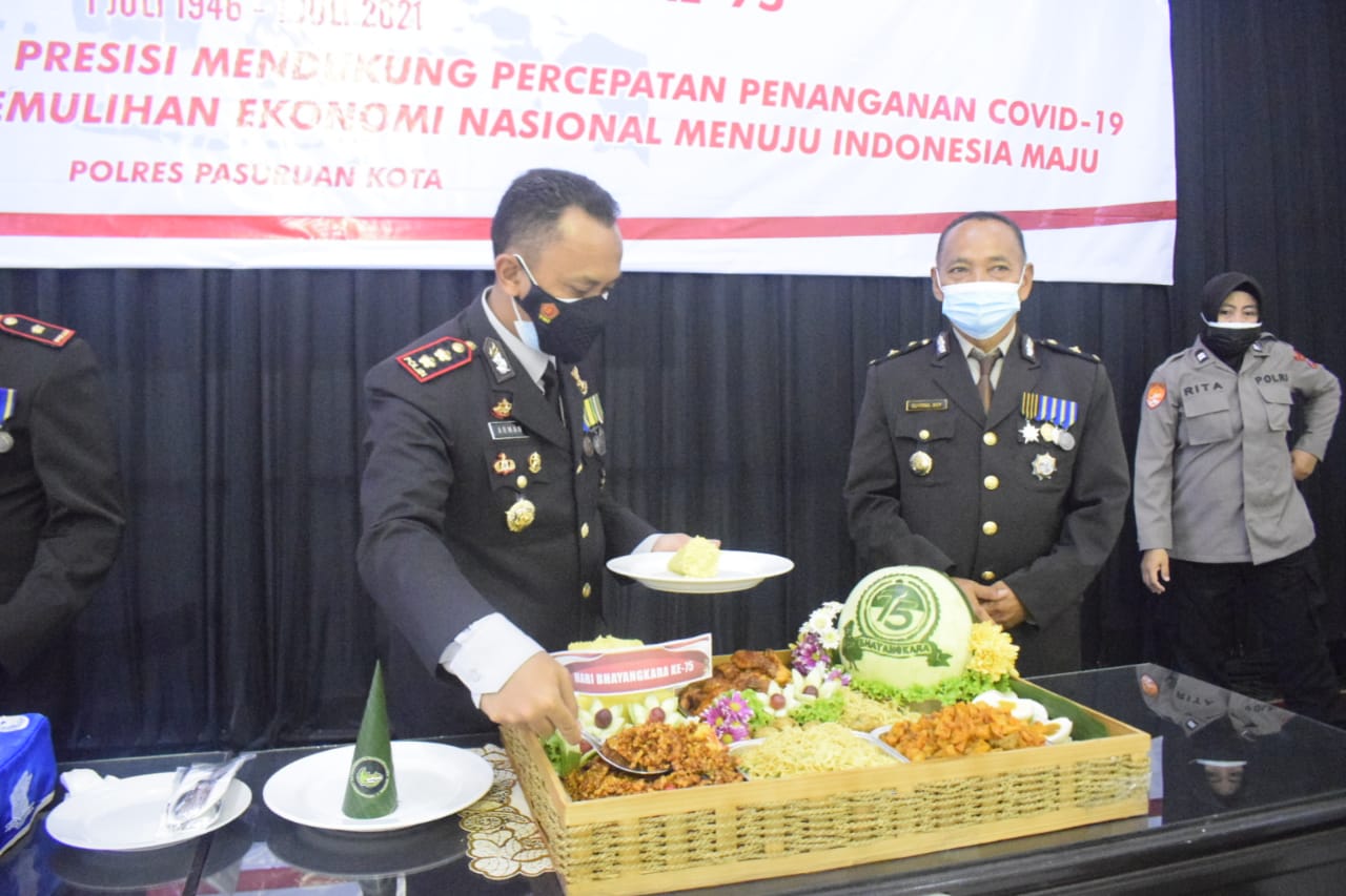 POLRES PASURUAN KOTA GELAR TASYAKURAN HARI ULANG TAHUN BHAYANGKARA KE – 75 TAHUN 2021