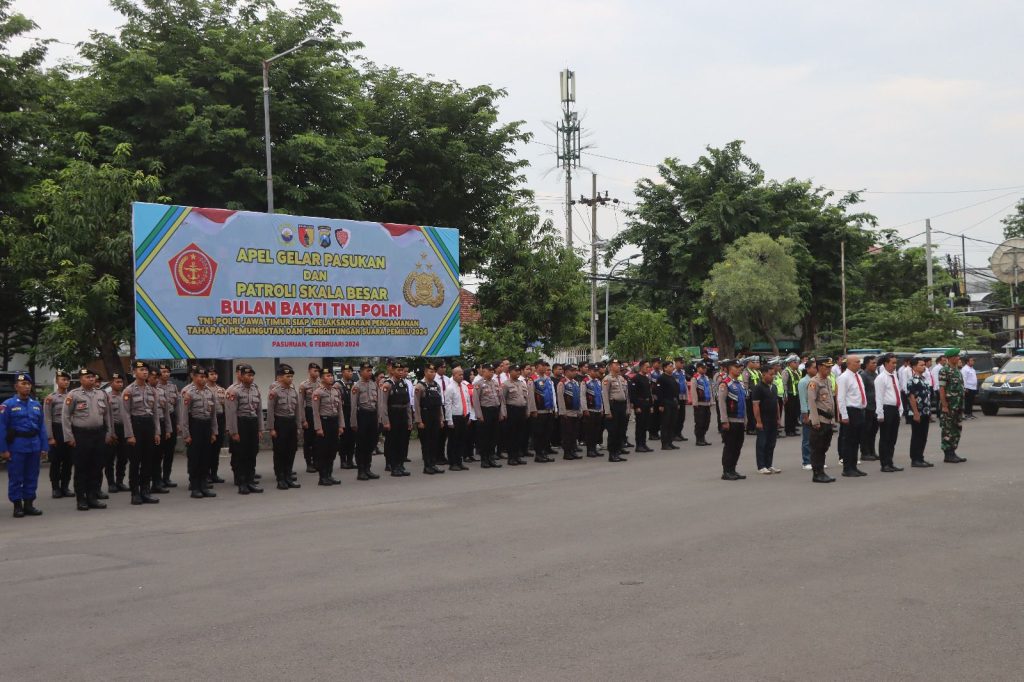 PASURUAN KOTA,ikagawanews.id – Dalam rangka memperkuat sinergi antara TNI-Polri, Polres Pasuruan Kota laksanakan Apel Gelar Pasukan dan Patroli Skala Besar, bagian dari Bulan Bhakti TNI-Polri. Acara ini bertujuan untuk memperkuat kesiapan dalam menghadapi tahapan pemungutan suara Pemilu 2024 di Jawa Timur. Selasa(6/2/2024).