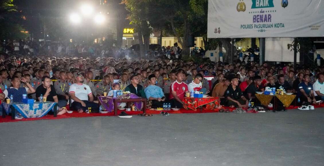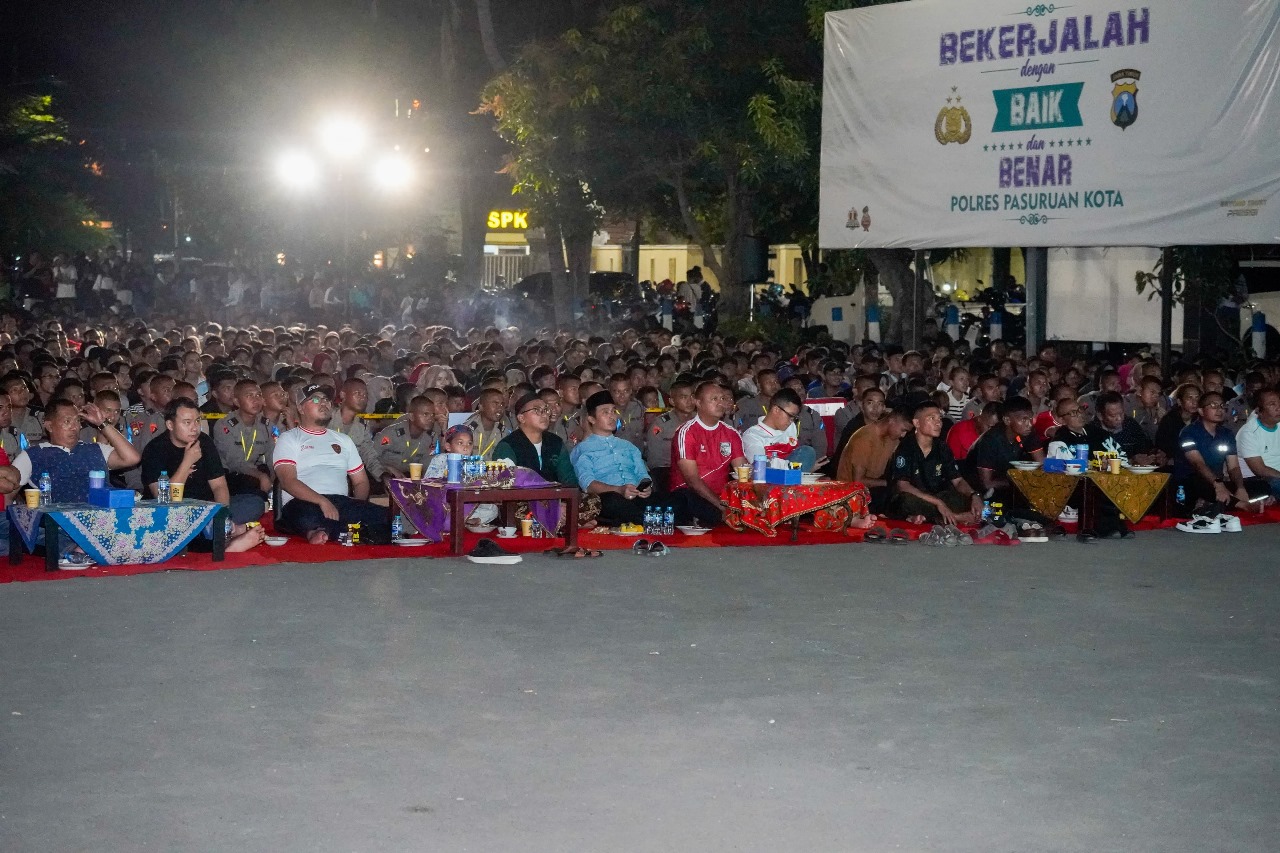 Polres Pasuruan Kota Titip Pesan Pilkada Damai Dalam Nobar Indonesia Lawan Filipina