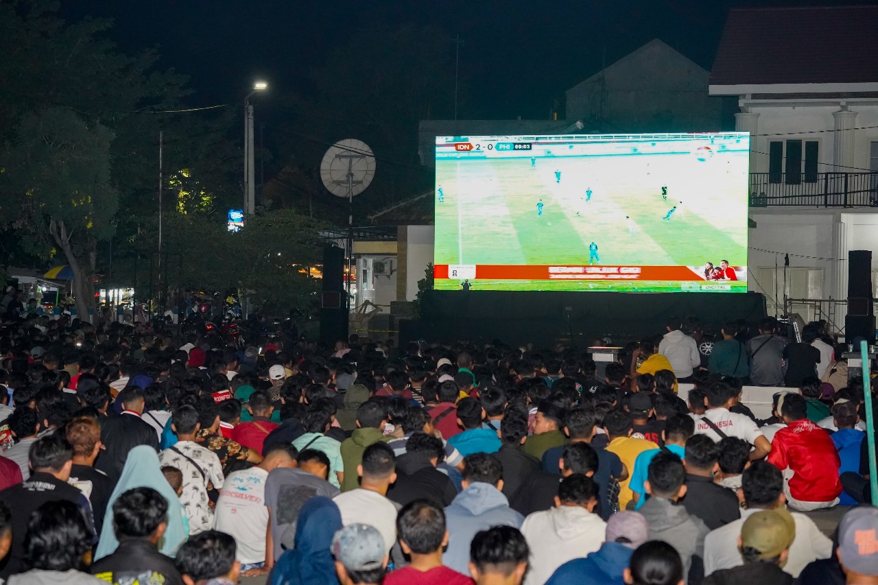 Ribuan masyarakat Pasuruan tumplek blek bersama Forkopimda, pemuka agama serta perwakilan dari KPU dan Bawaslu dalam acara nobar yang diisi dengan berbagai kegiatan menarik selain menyaksikan pertandingan Timnas Indonesia, juga pemutaran video tentang pentingnya menjaga kedamaian selama Pilkada.