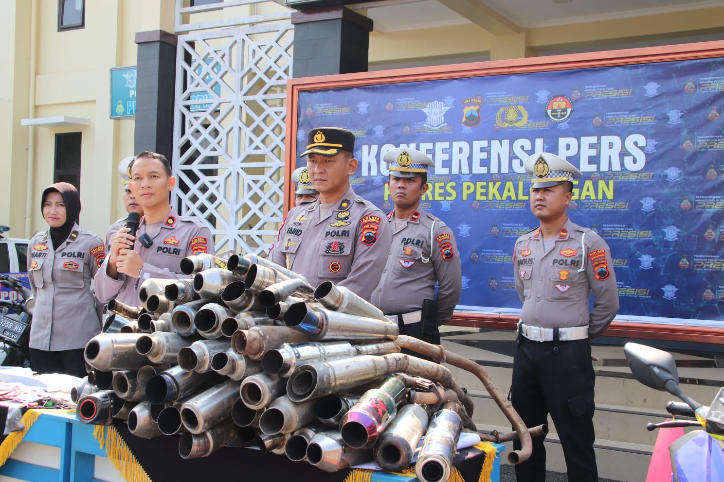 Polres Pekalongan Sita Puluhan Knalpot Brong Selama Operasi Patuh Candi 2023, Pelanggaran Didominasi Kalangan Pelajar