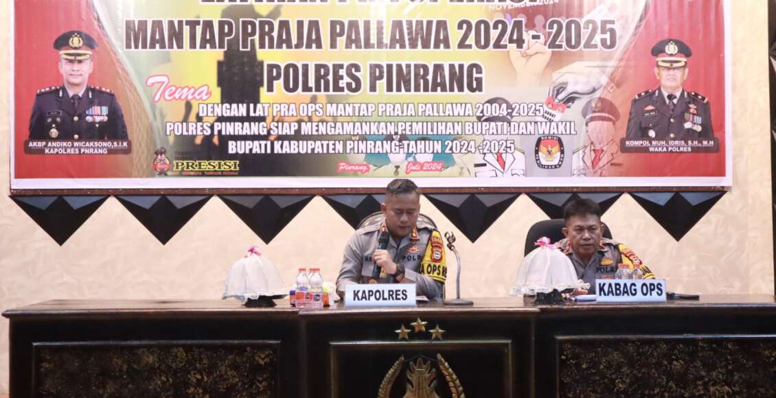 Pinrang,ikagawanews.id – Dalam rangka mengamankan tahapan pemilihan kepala daerah (Pilkada) serentak tahun 2024, Kepolisian Resor Pinrang menggelar kegiatan latihan pra operasi Mantap Praja Pallawa Tahun 2024-2025, Senin (22/07/24).