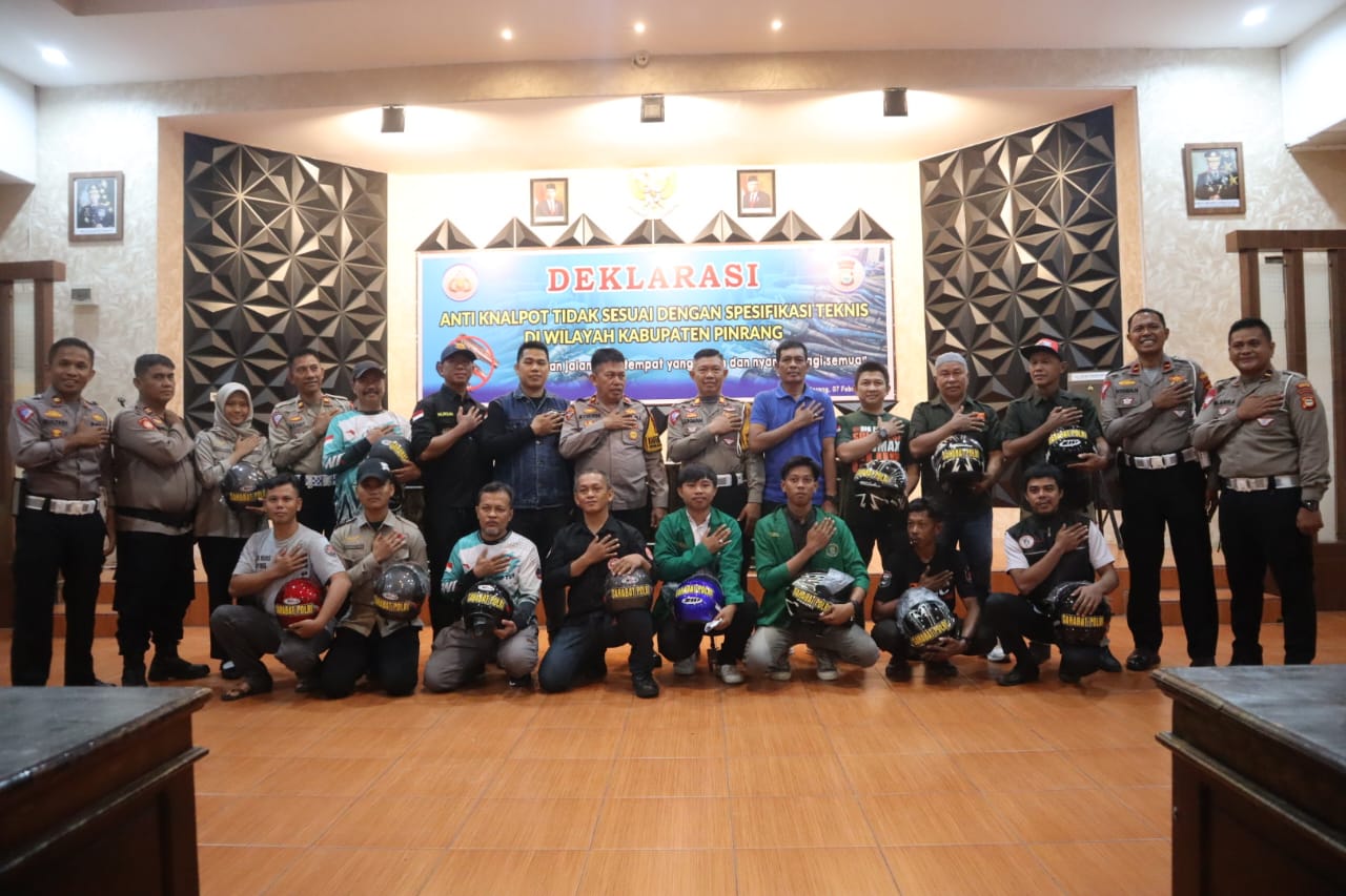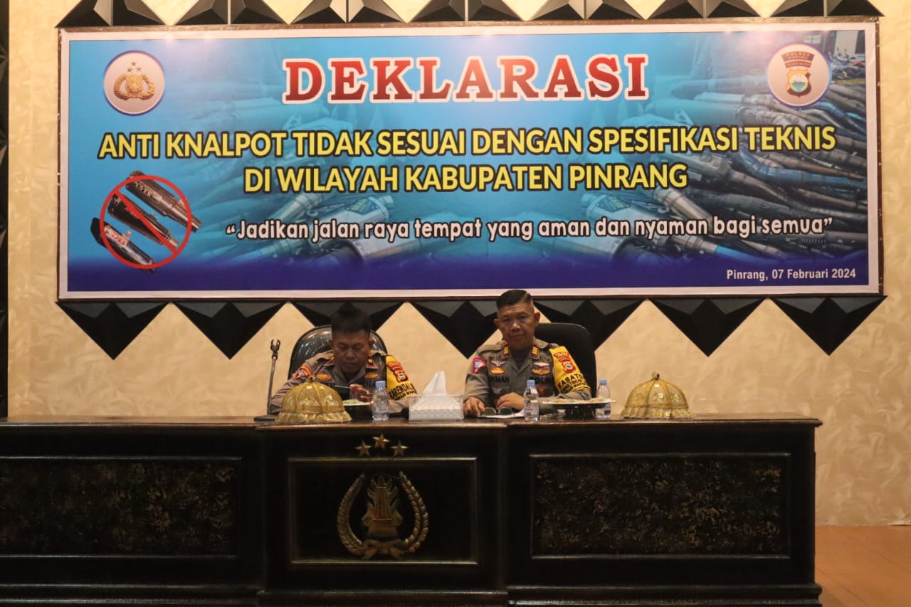 Kapolres Pinrang AKBP Andiko Wicaksono,S.I.K yang diwakili oleh Kabag Ops KOMPOL Muhammad Yusuf Badu,S.H mengatakan bahwa deklarasi ini merupakan upaya kolaboratif antara kepolisian dan masyarakat untuk menekan penggunaan knalpot diluar Spektek, sekaligus menggaungkan keselamatan berlalu lintas.
