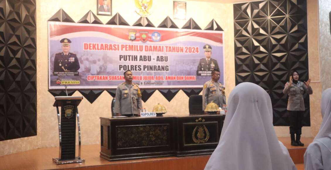 PINRANG,ikagawanews.id – Polres Pinrang menggelar deklarasi pemilu damai putih abu -abu dalam rangka pemilihan legislatif dan pemilihan Presiden dan wakil Presiden tahun 2024, yang digelar di aula wicaksana laghawa polres pinrang, Jumat (09/02/2024)